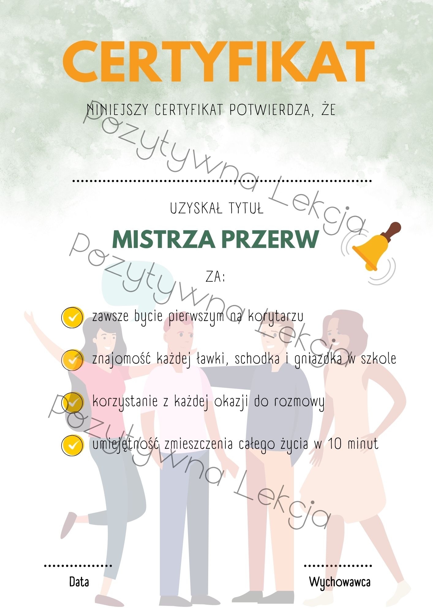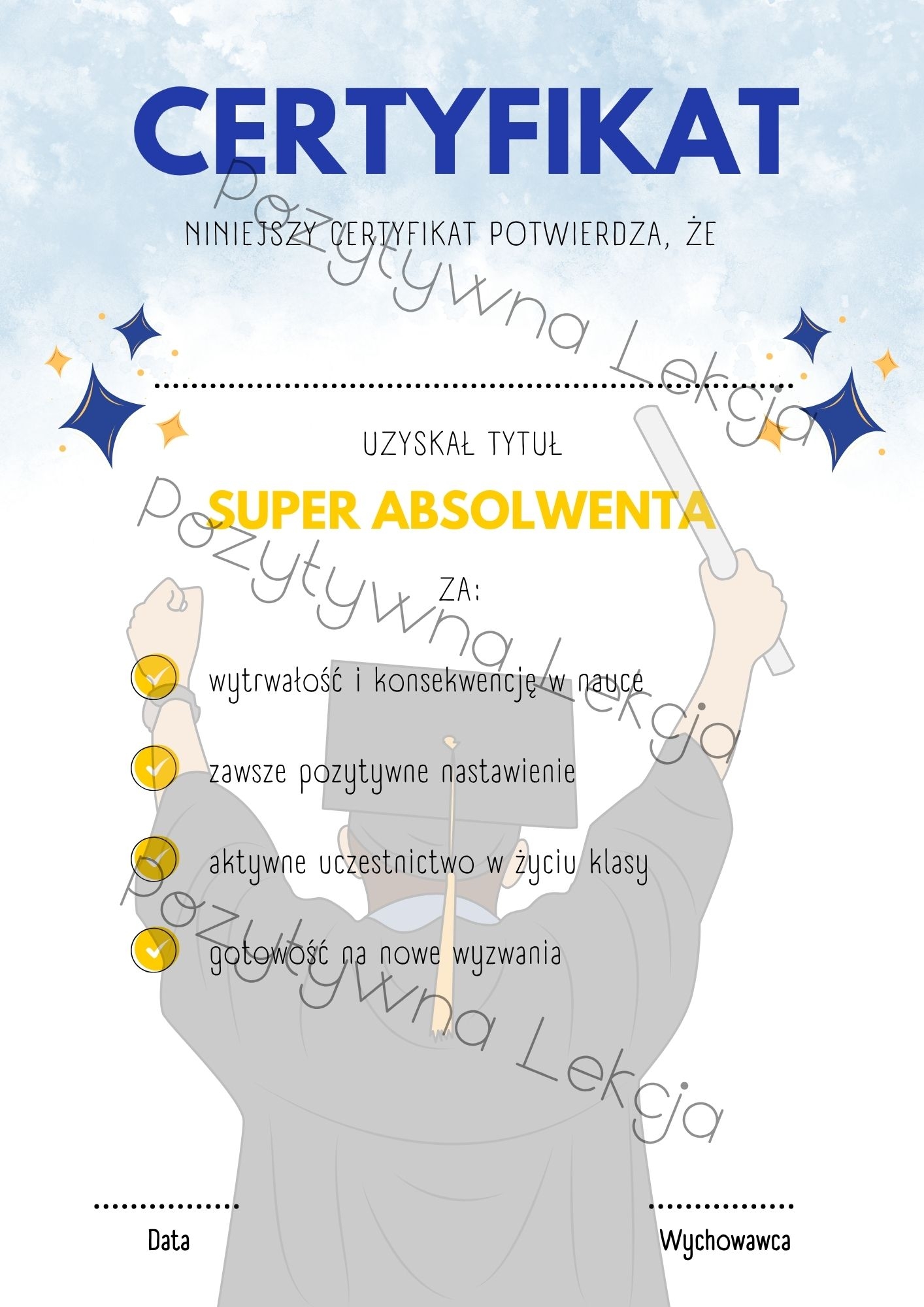 Przygotowałam zestaw 32 kreatywnych i zabawnych certyfikatów dla uczniów klas 8 oraz szkół średnich. Każdy z nich to unikalny tytuł, krótki opis za co jest przyznawany oraz nutka szkolnego humoru, który uczniowie uwielbiają!