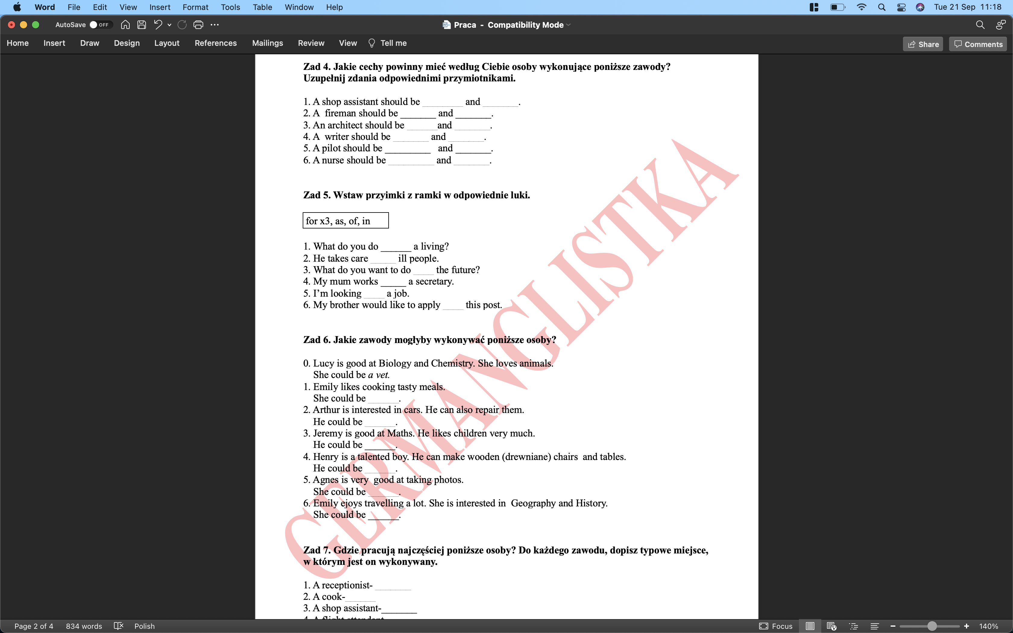 Praca- ćwiczenia powtórzeniowe dla ósmoklasistów i nie tylko