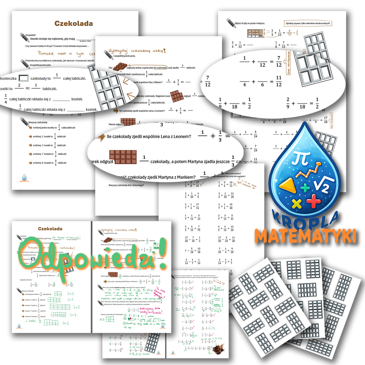 - karty z tabliczkami czekolady do malowania ułamków. Bardziej namacalne podejście dla młodszych dzieciaków.