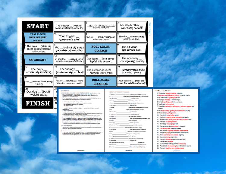 – Przykłady na planszówce dobrane są tak, żeby tworzone zdania opisywały zachodzące zmiany i rozwój. Nie żadne inne sytuacje, które możemy opisać przy pomocy czasu Present Continuous.