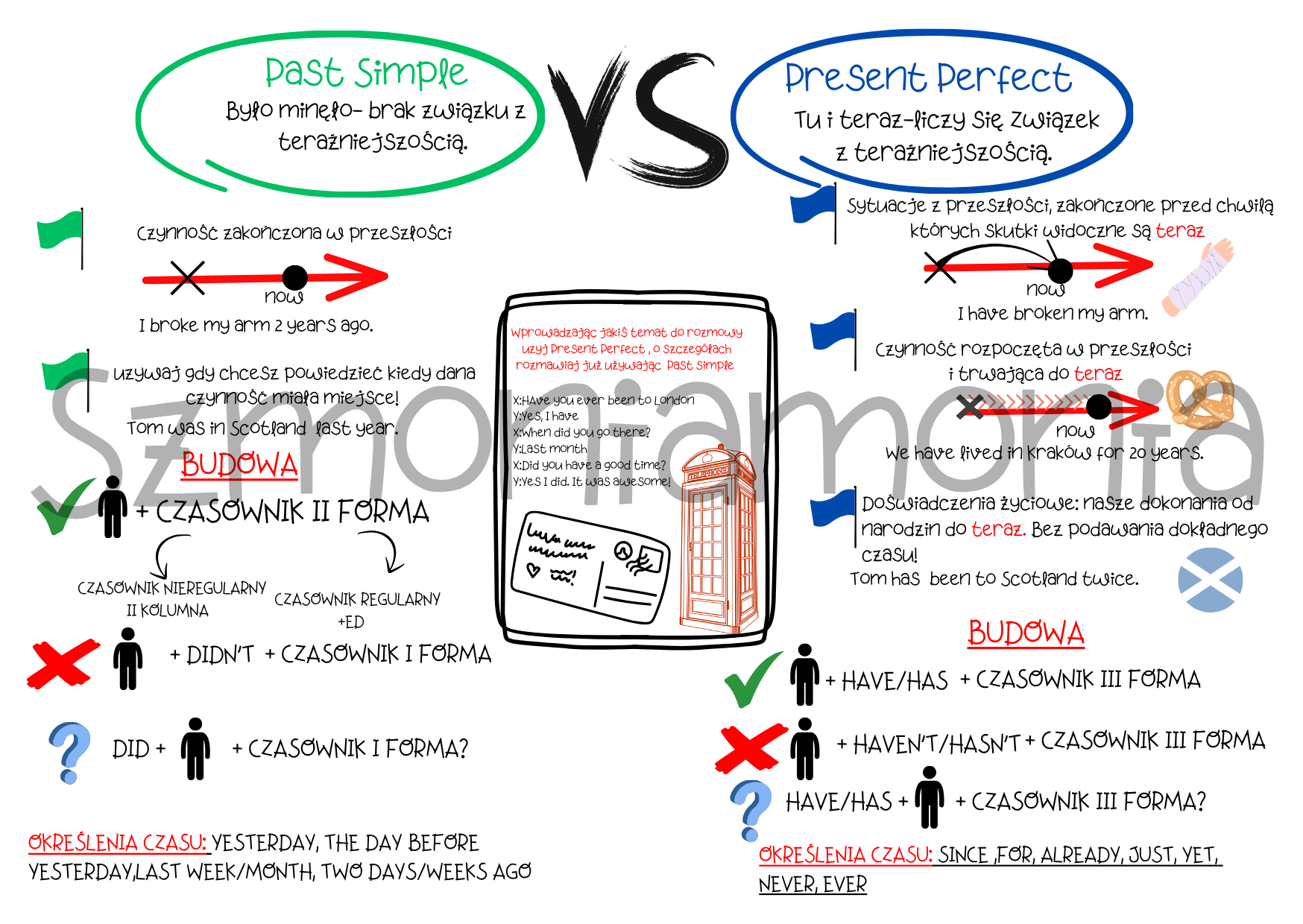 Porównanie czasów Past Simple i Present Perfect- budowa i zastosowanie w atrakcyjnej wizualnie i łatwo przystępnej formie.