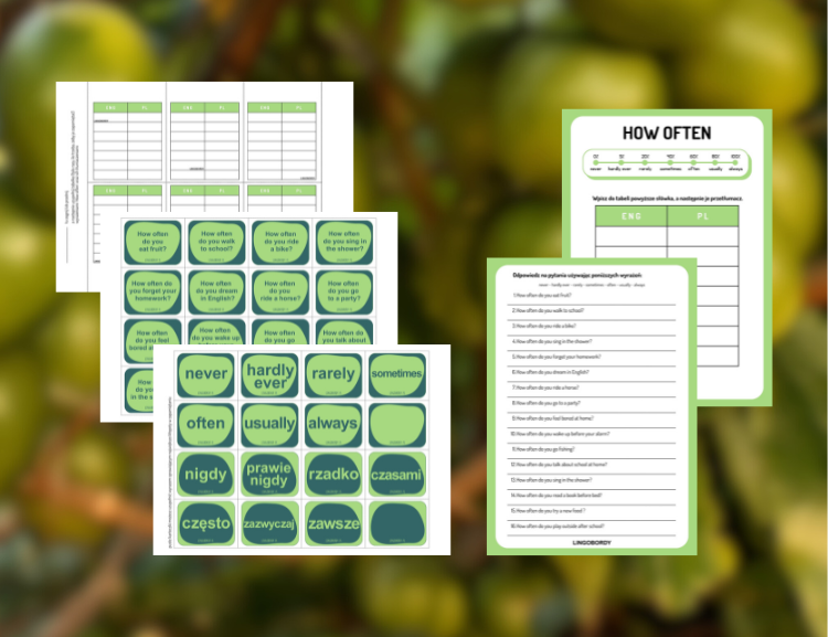 - Można ją wykorzystać jako rozgrzewkę przed grą kartami memory z pytaniami 'How often' lub jako podsumowanie po grze, formę utrwalenia materiału.
