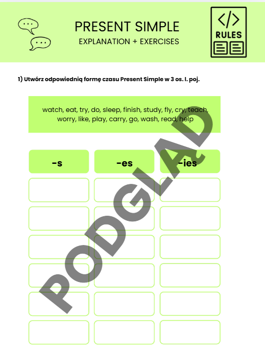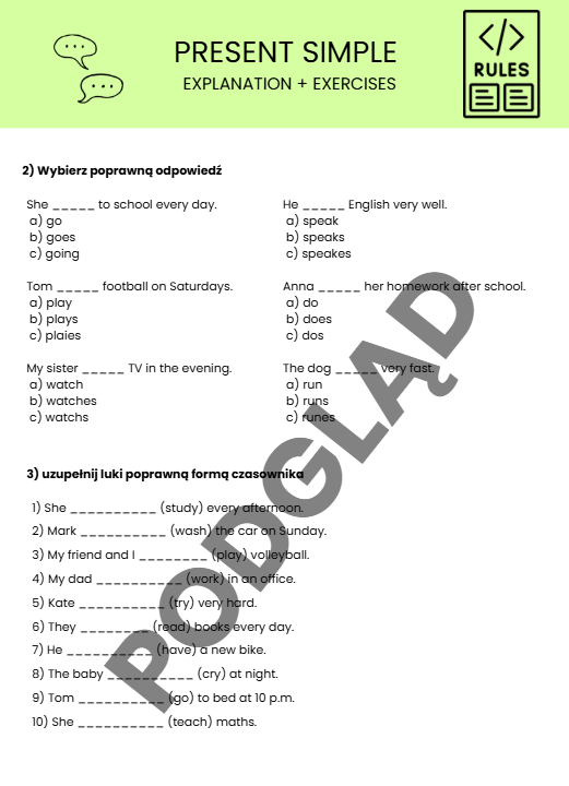 Zestaw zawiera: wytłumaczenie czasu Present simple + zadania