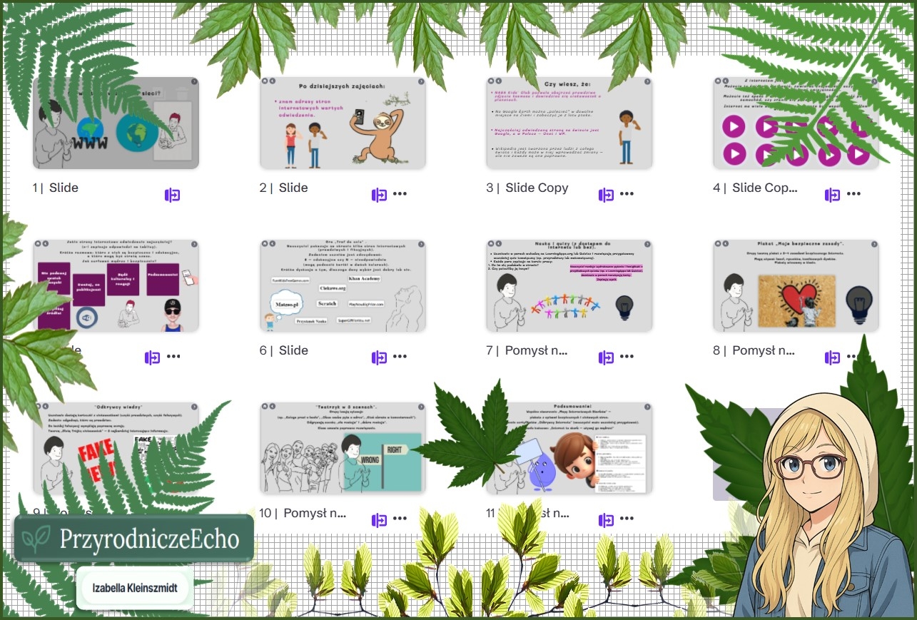 Witajcie Nazywam się Izabella Kleinszmidt (PrzyrodniczeEcho). Jestem nauczycielem przyrody, biologii, geografii i chemii w szkole podstawowej w Pomysku Wielkim. Uwielbiam mój zawód i cieszę się, że robię w życiu to co kocham. Pasja dla nauczyciela jest bardzo ważna:). Prowadzę stronę PrzyrodniczeEcho na FB, nagrywam filmiki do lekcji, konstruuję prezentacje i lekcje multimedialne, escape roomy oraz sketchnotki i karty pracy w programie power point. Zapraszam na stronę internetową mojej szkoły, gdzie znajdują się (niektóre darmowe) opracowania lekcji do przyrody, biologii, geografii i chemii w SP. Adres strony internetowej: https://sppomyskwielki.edu.pl - zakładka - dla ucznia. Od niedawna zapraszam również na moją stronę internetową: https://ikleinszmidt.wixsite.com/przyrodniczeecho Zapraszam do korzystania z mojej pracy:) Bardzo proszę również czytać opisy, aby wiedzieć, jaki materiał znajduje się w danym pliku. Zachęcam do kontaktu w razie jakichś pytań lub błędów w pomocach - brakach lub literówkach-wszystko można naprawić? Jakich materiałów możecie Państwo oczekiwać? SKETCHNOTKA - notatka kompletna z określonego tematu KARTA PRACY - zazwyczaj sketchnotka z wykropkowanymi miejscami PREZENTACJA MULTIMEDIALNA - kompletne wiadomości do odpowiedniego tematu wraz z grafiką i tekstem - zarówno w power point jak i genially - tę koniecznie należy zapisać na swoim koncie! LEKCJA MULTIMEDIALNA - pomysł na przeprowadzenie lekcji - taki "tok lekcji" - skrócony scenariusz ZESTAWY - proszę się wczytać w opis, informuję co mieści się w konkretnym zestawie:) Pozdrawiam cieplutko:)