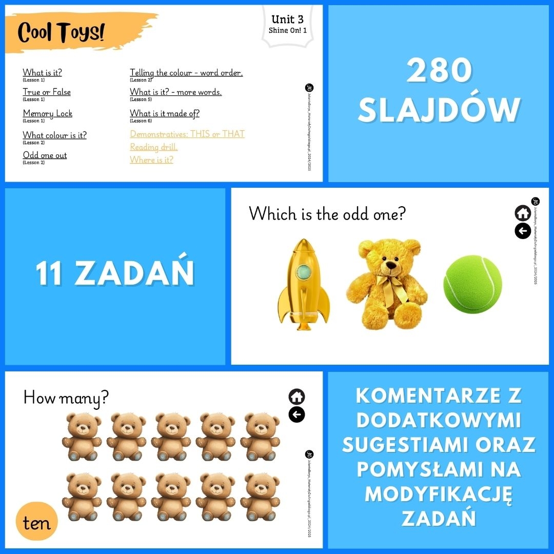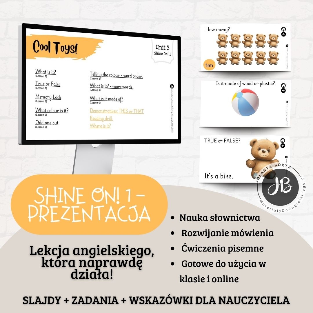 Ten zestaw zawiera prezentację, która została opracowana jako uzupełnienie pracy z podręcznikiem Shine On! 1 – Unit 3.
