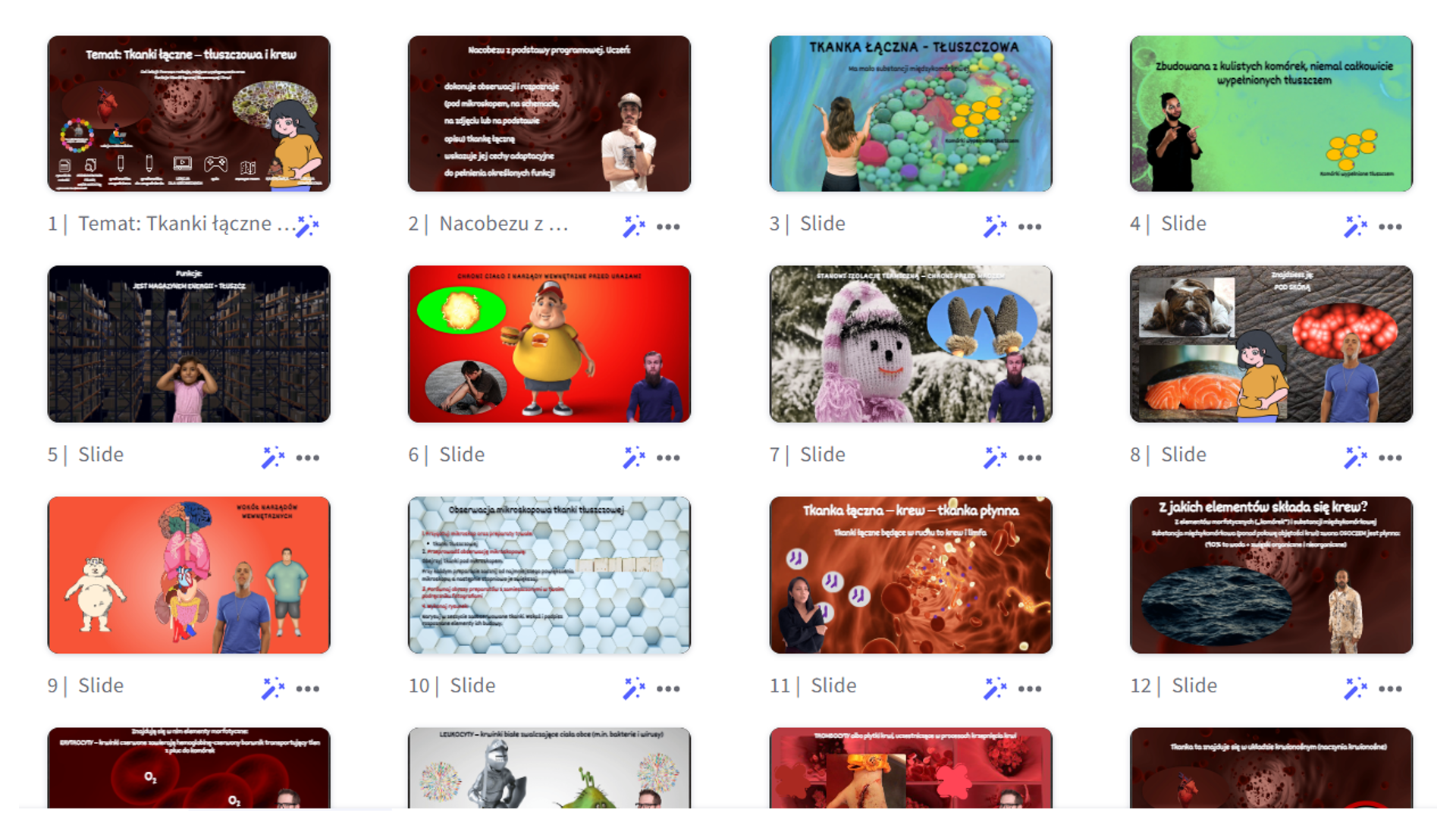 Prezentacja „Tkanki zwierzęce łączne – tkanka tłuszczowa i krew” do biologii w klasie 6. Dział I – temat nr 6 według wydawnictwa NOWA ERA. Prezentacja zawiera 19 slajdy z informacjami i grafiką – niestety nie wszystkie grafiki są dostępne na darmowych stronach, zatem można ją wzbogacić fotografiami w własnym zakresie. Obrazy są w większości ruchome – gify. Grafika w całości pochodzi z Pixabay.com oraz z dostępnych na genial.ly gifów. Należy oczywiście założyć konto na genial.ly i wystarczy pobrać przez reuse this genially – koniecznie:). Pozostaje się wtedy cieszyć swoją własną prezentacją:)