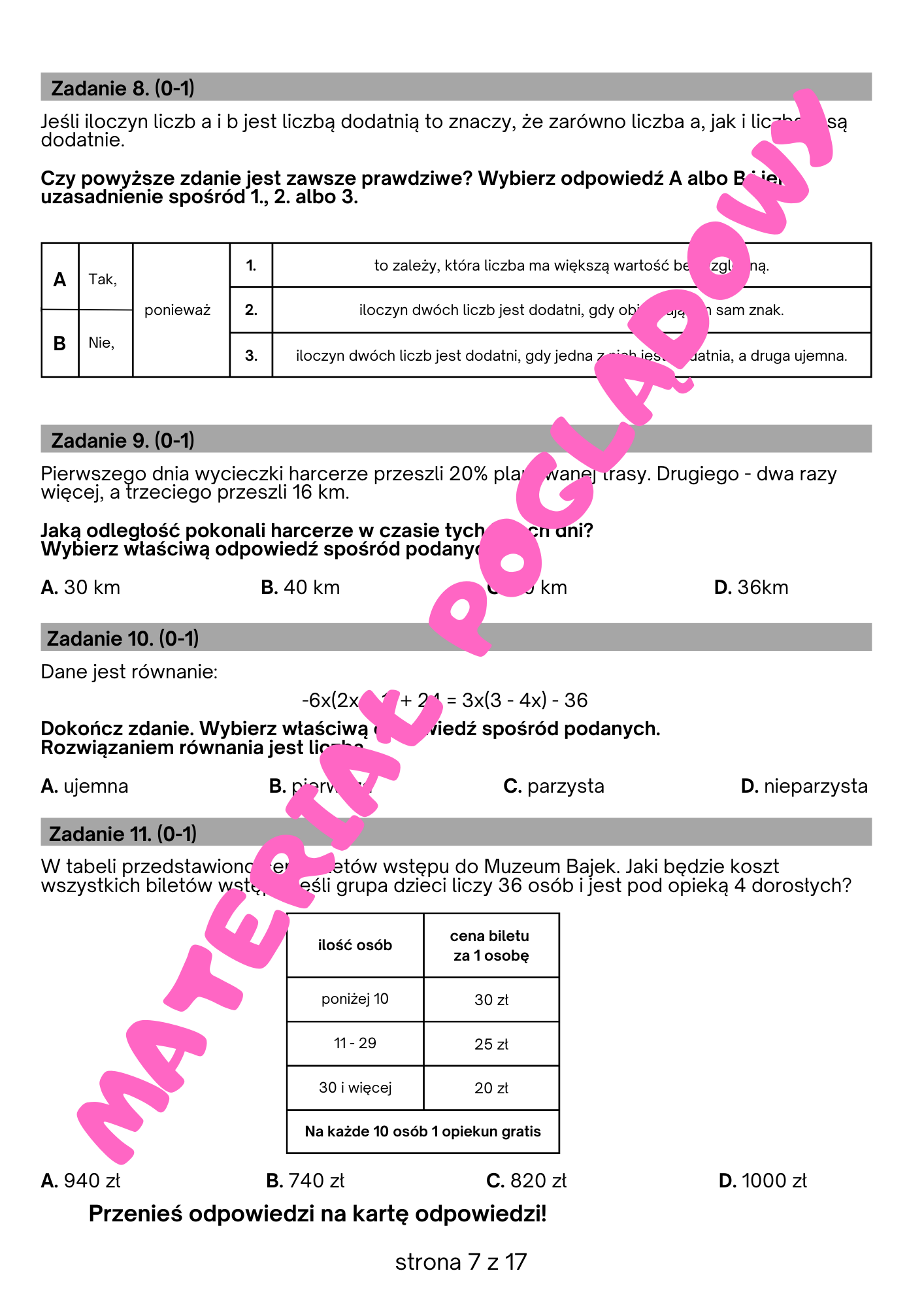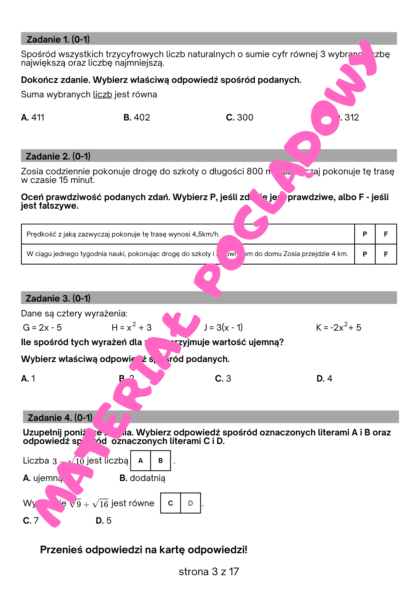 Dwa zadania otwarte są cytatami z opublikowanych arkuszy na stronach CKE (oznaczone miesiącem i rokiem publikacji).