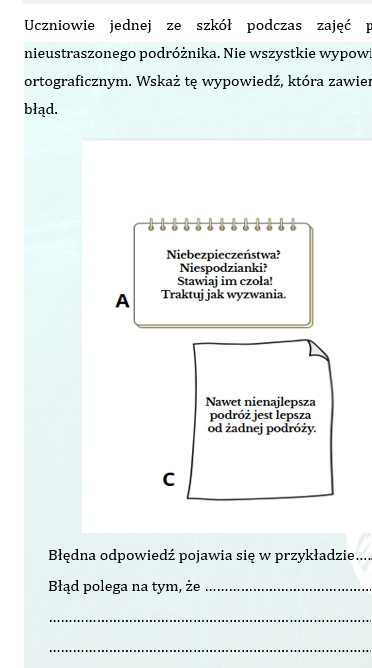 Przedstawiam przykładowy, kompletny arkusz egzaminu, który pozwoli oswoić uczniów klas 6-7 z kształtem, formą i liczbą zadań egzaminacyjnych. Arkusz zbudowany jest wokół znajomości lektury Hobbit, czyli tam i z powrotem oraz zagadnień związanych z podróżowaniem. Zawiera zestaw 18 zadań, których forma przypomina typowe zadania egzaminacyjne. Arkusz ma na celu zapoznanie uczniów klas 6-7 lub 8 ze specyfiką zadań egzaminacyjnych, brzmieniem poleceń, strukturą zadań, punktacją i kryteriami oceniania. Pozwoli zdiagnozować uczniowskie strategie gospodarowania czasem, wychwycić najczęściej pojawiające się wątpliwości i zaplanować dalszą pracę przygotowującą do egzaminu.