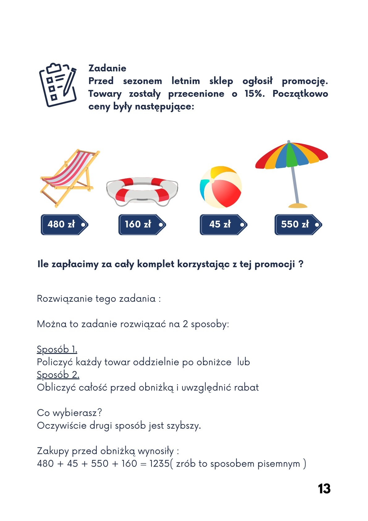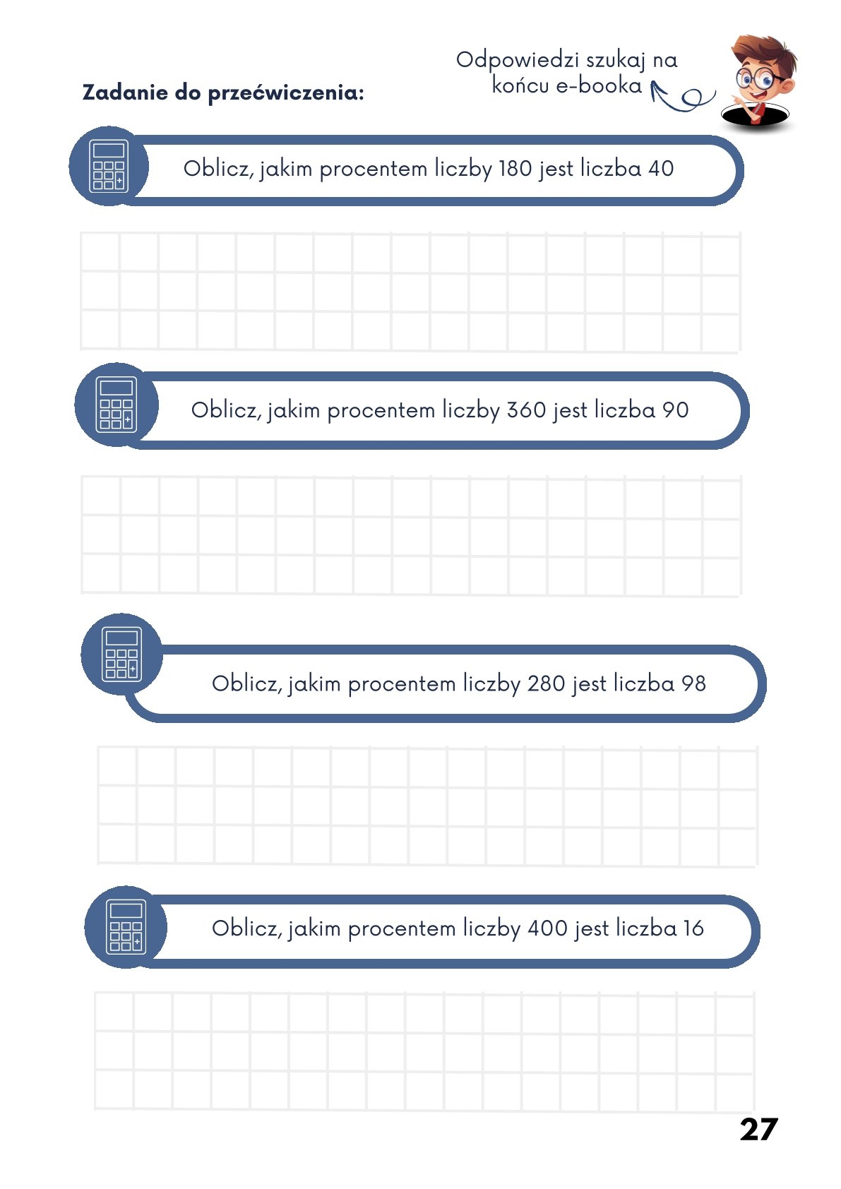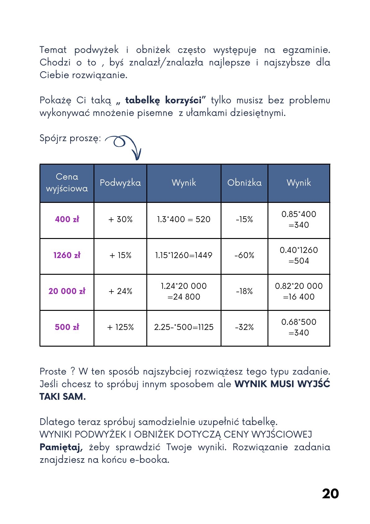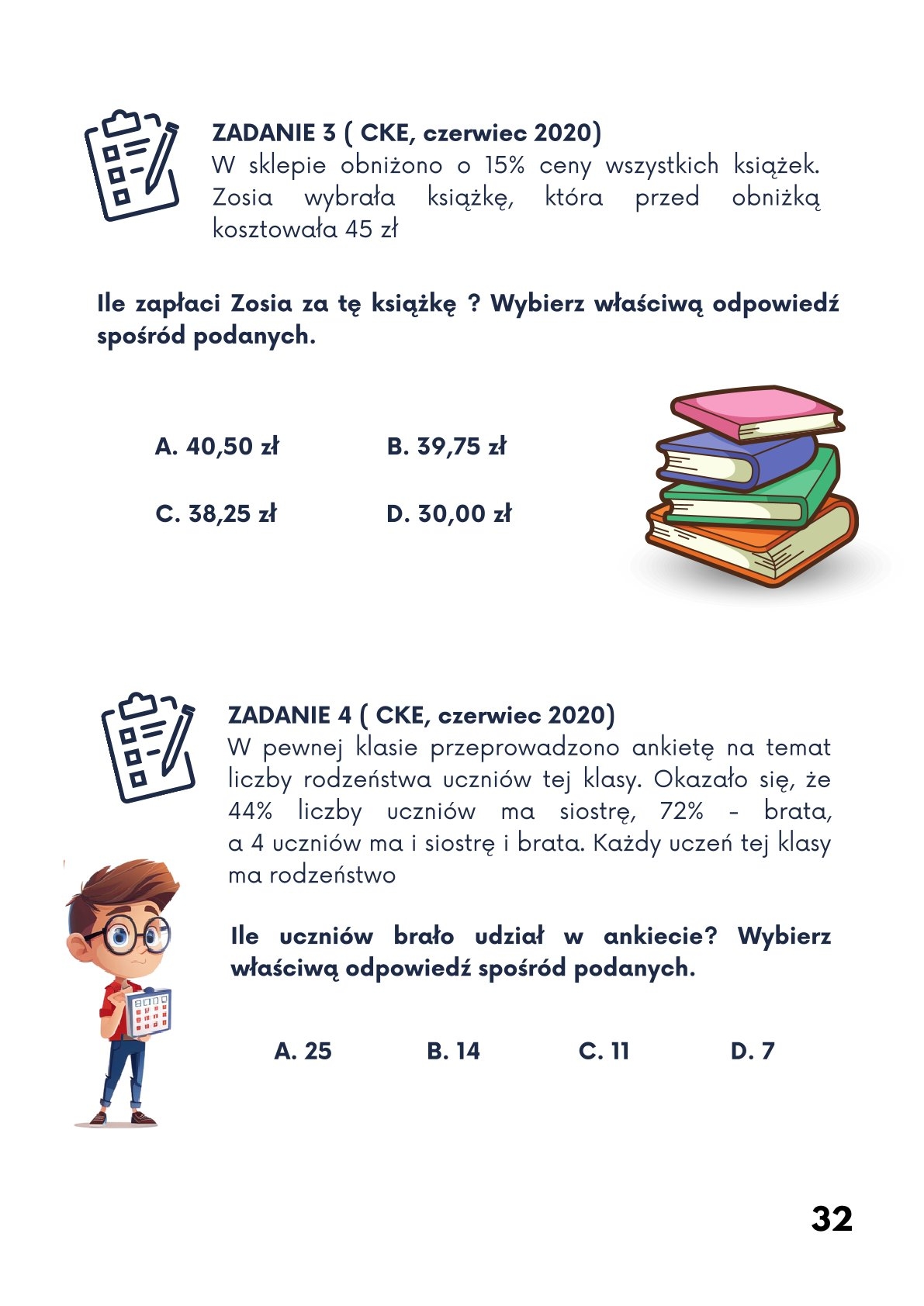 Wszystko co potrzebne uczniowi do przećwiczenia tematu – PROCENTY - znajdziesz tutaj. Podstawowa teoria ( krótka i niezbędna ), rozwiązane przykłady, zadania do samodzielnego rozwiązania oraz z egzaminów CKE. Tabelki korzyści. Kolorowo i przystępnie. Wszystkie zadania opatrzone odpowiedziami. Przykłady z życia wzięte- podwyżki, obniżki, podatek VAT…