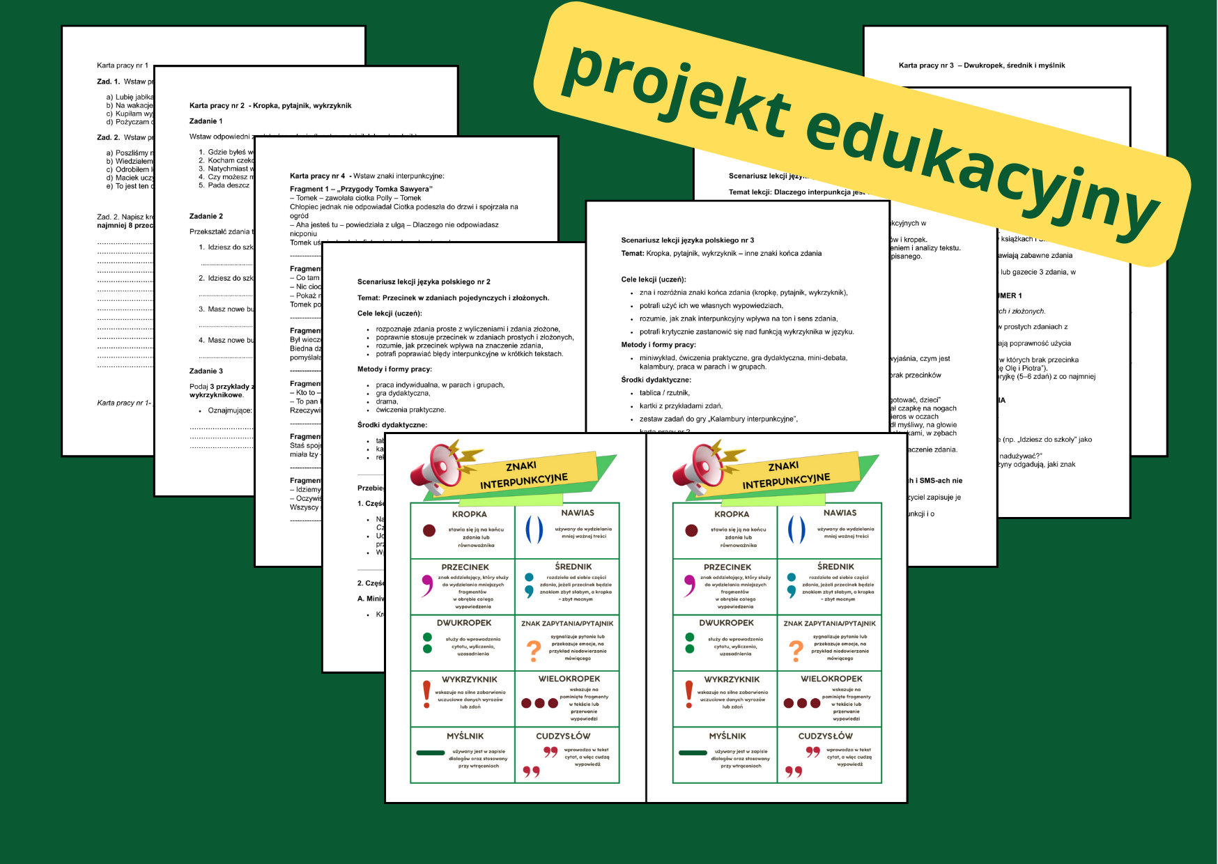Projekt rozwija: umiejętność poprawnego stosowania znaków interpunkcyjnych, twórcze myślenie, współpracę w grupie oraz czytanie ze zrozumieniem. Idealny do realizacji w ciągu 4–6 tygodni.