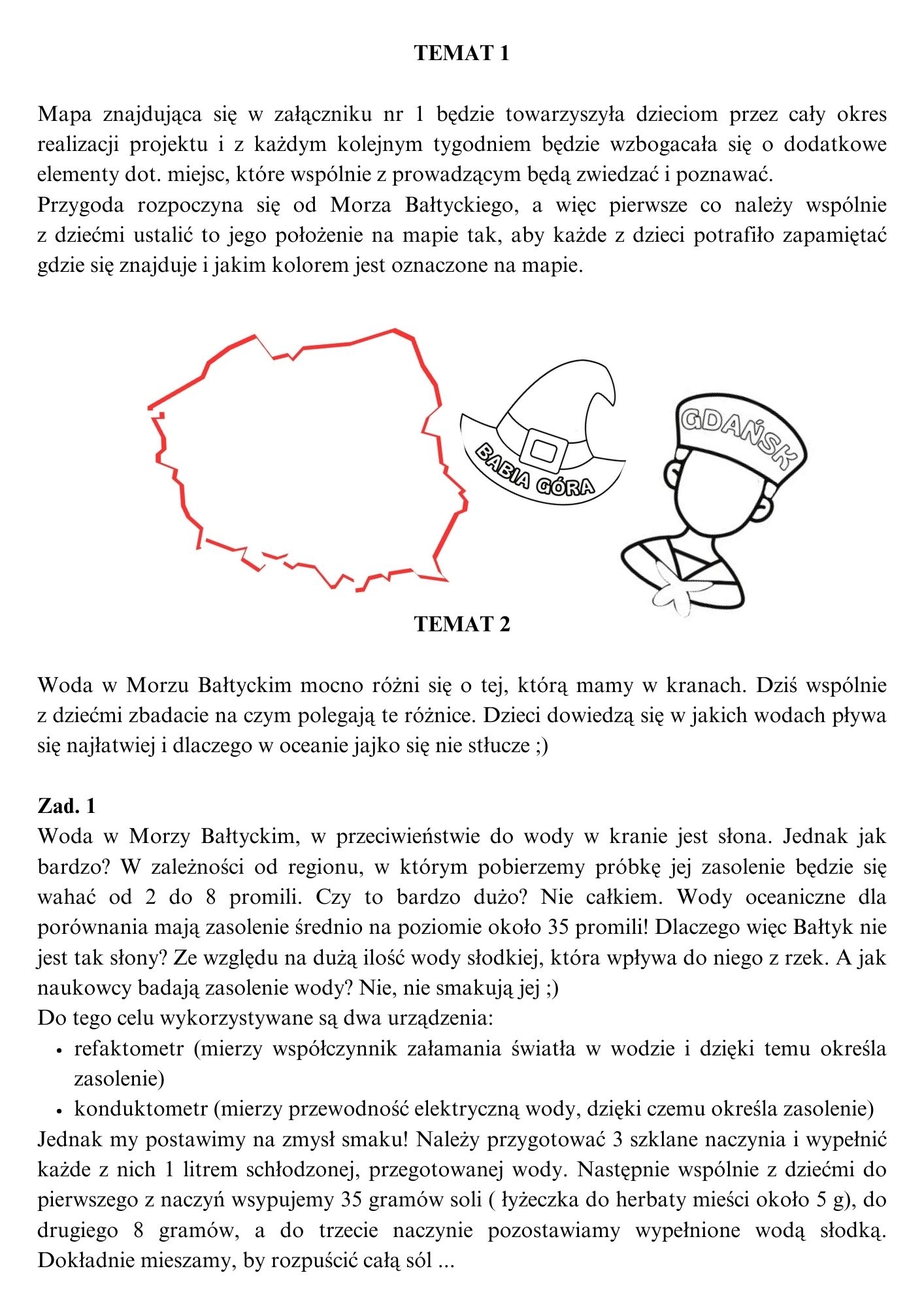 Zadania są krótkie, nowatorskie i opracowane w sposób, który ma pomóc dzieciom łatwo i przyjemnie zapamiętać podstawowe informacje o ważnych miastach w Polsce, Morzu Bałtyckim, czy naszych pięknych górach. Poszczególne zadania cechuje również różnorodność, aby działanie wywoływało u dzieci zaciekawienie i ekscytację przed każdym spotkaniem.
