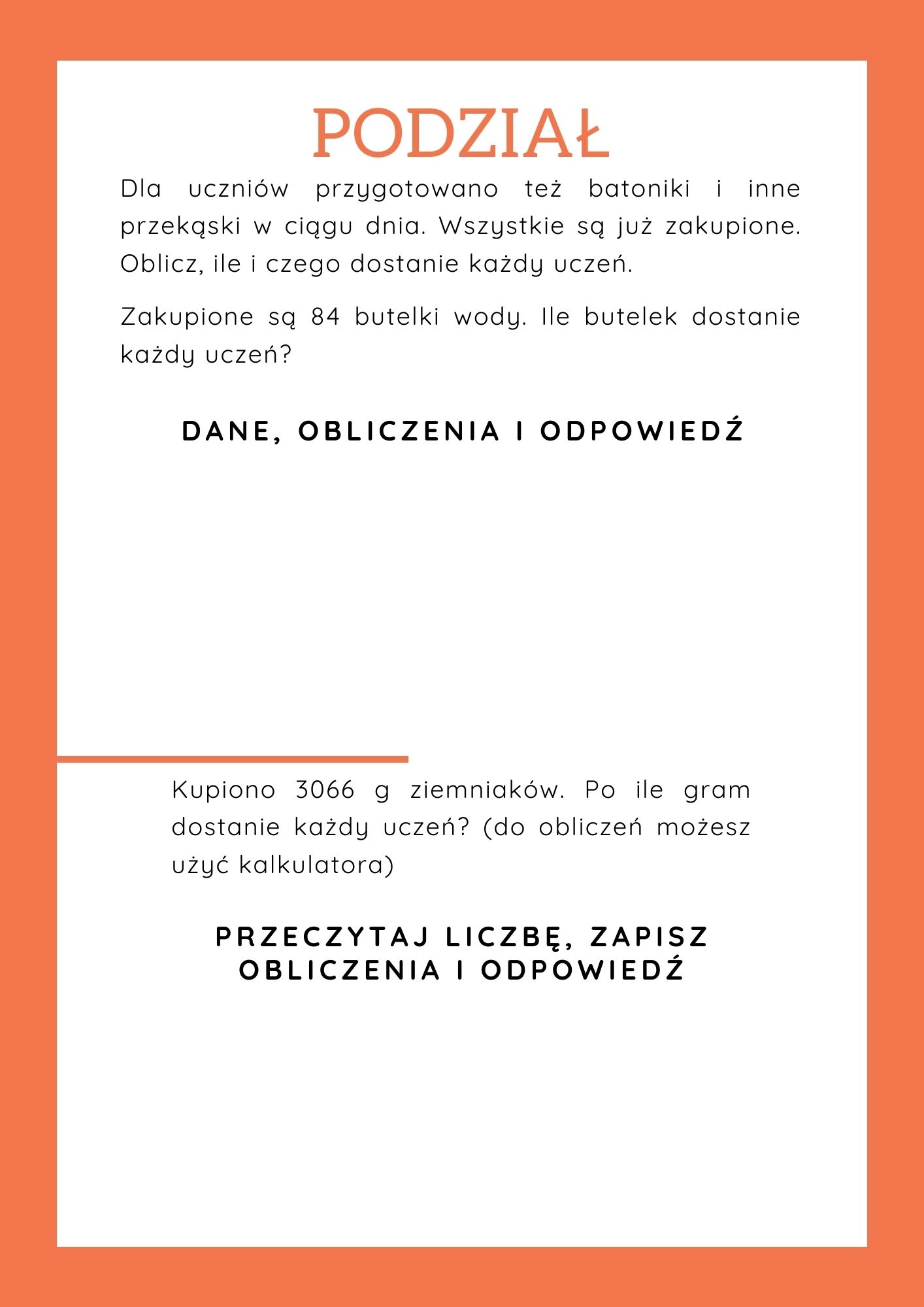 Projekt "Zaplanuj wycieczkę" przeznaczony jest dla uczniów klasy 4. Zawiera zadania problemowe dotyczące dzielenia z resztą, podstawowych obliczeń na liczbach, porównywania różnicowego i iloczynowego, szacowania, planowania czasu wolnego, zadań tekstowych. Dodatkowo zawiera propozycję mini zawodów dla ucznia. Zawody można wykonać samodzielnie, a także klasowo.