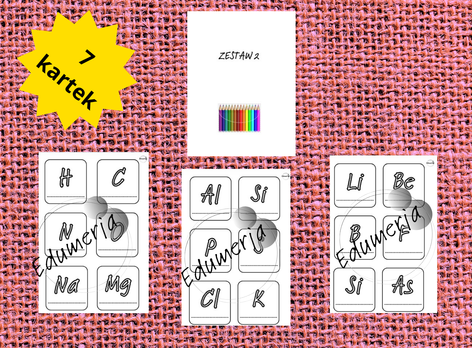 ✅ karty obejmujące pierwiastki z podstawy programowej szkoły podstawowej (oraz kilka dodatkowych – dla ambitnych),