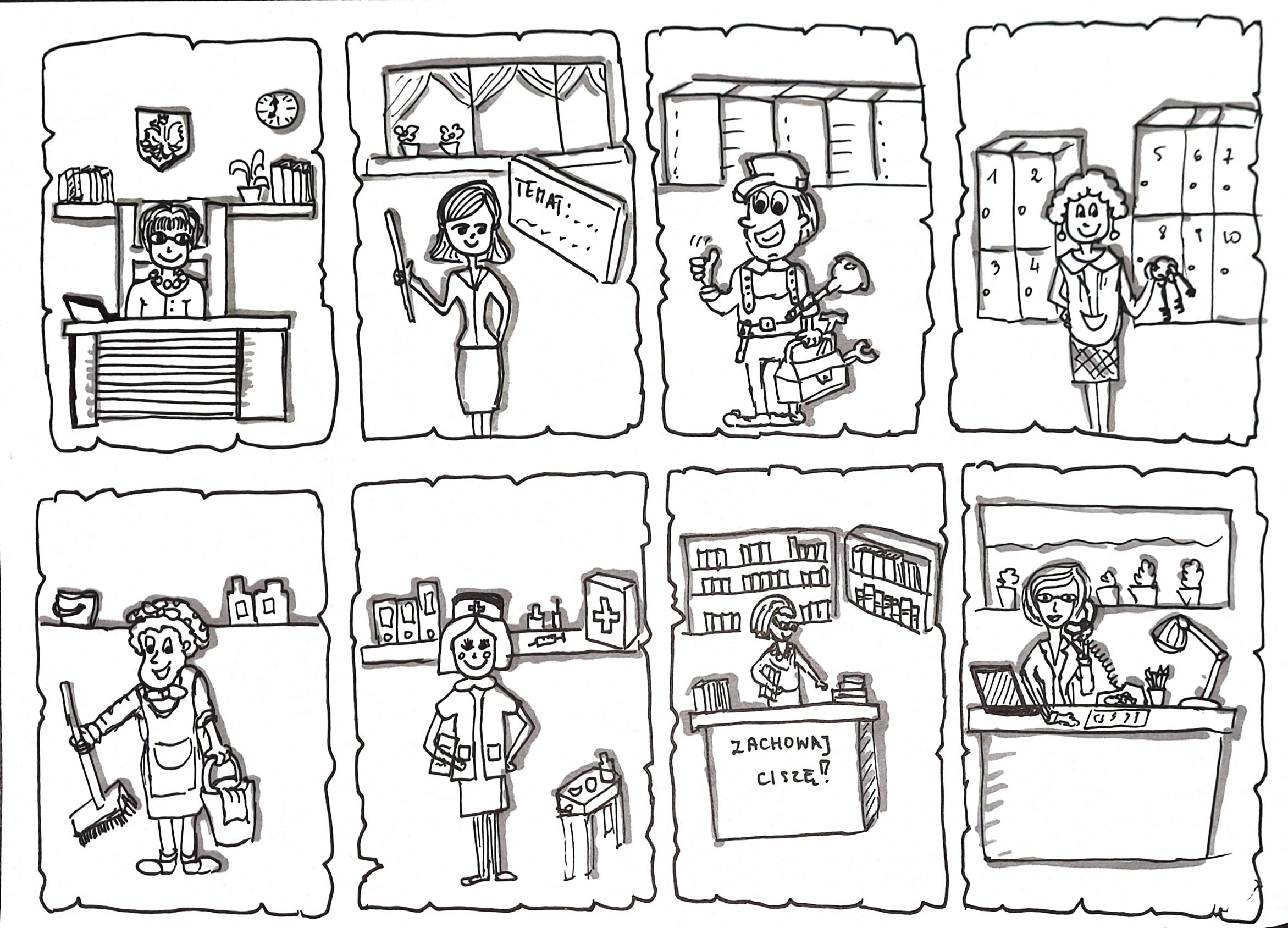 Przedszkole. Zawody (Dwie karty pracy: kolorowa + do uzupełnienia)