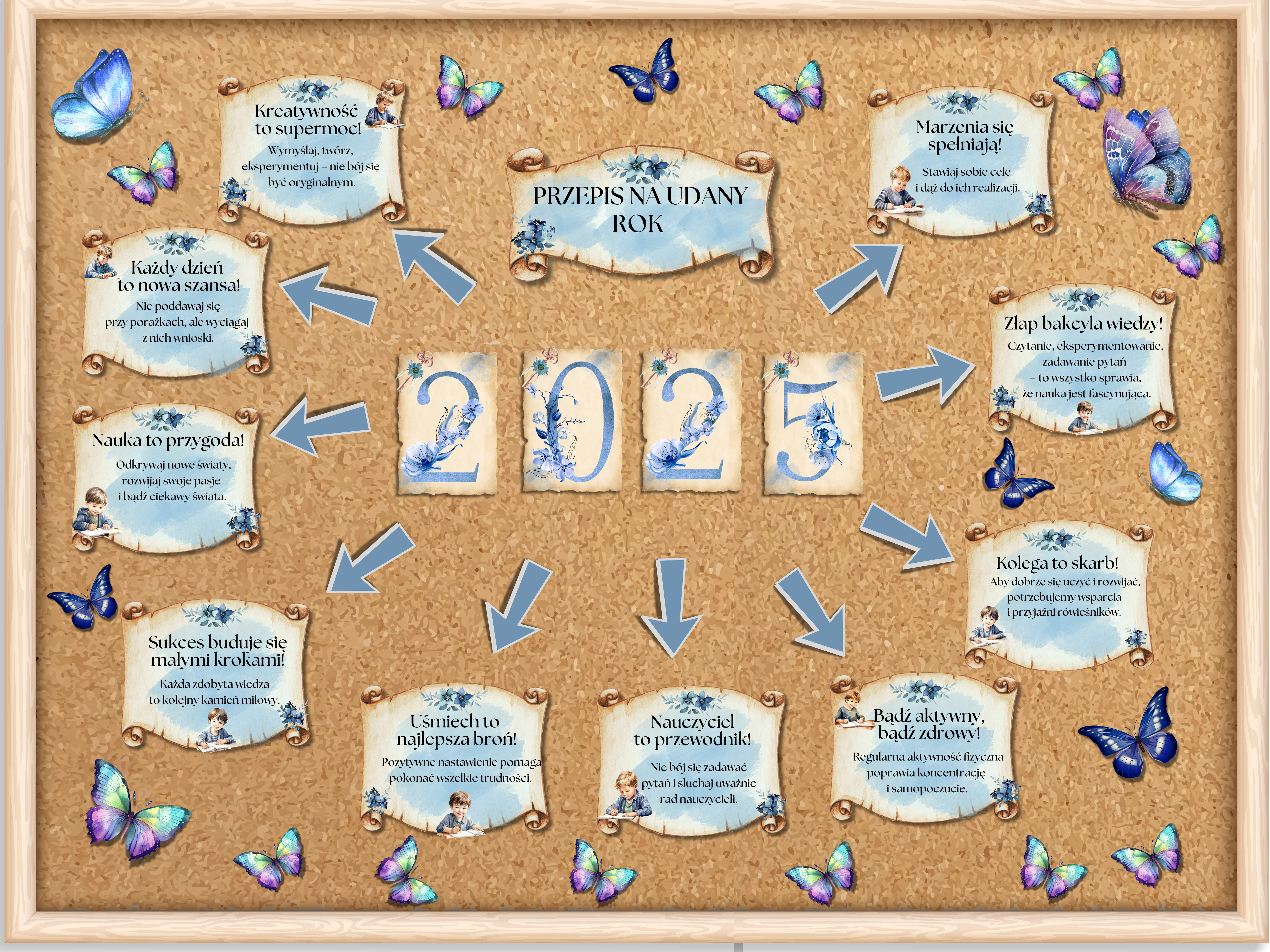 Zestaw materiałów na gazetkę szkolną. W skład zestawu wchodzi: