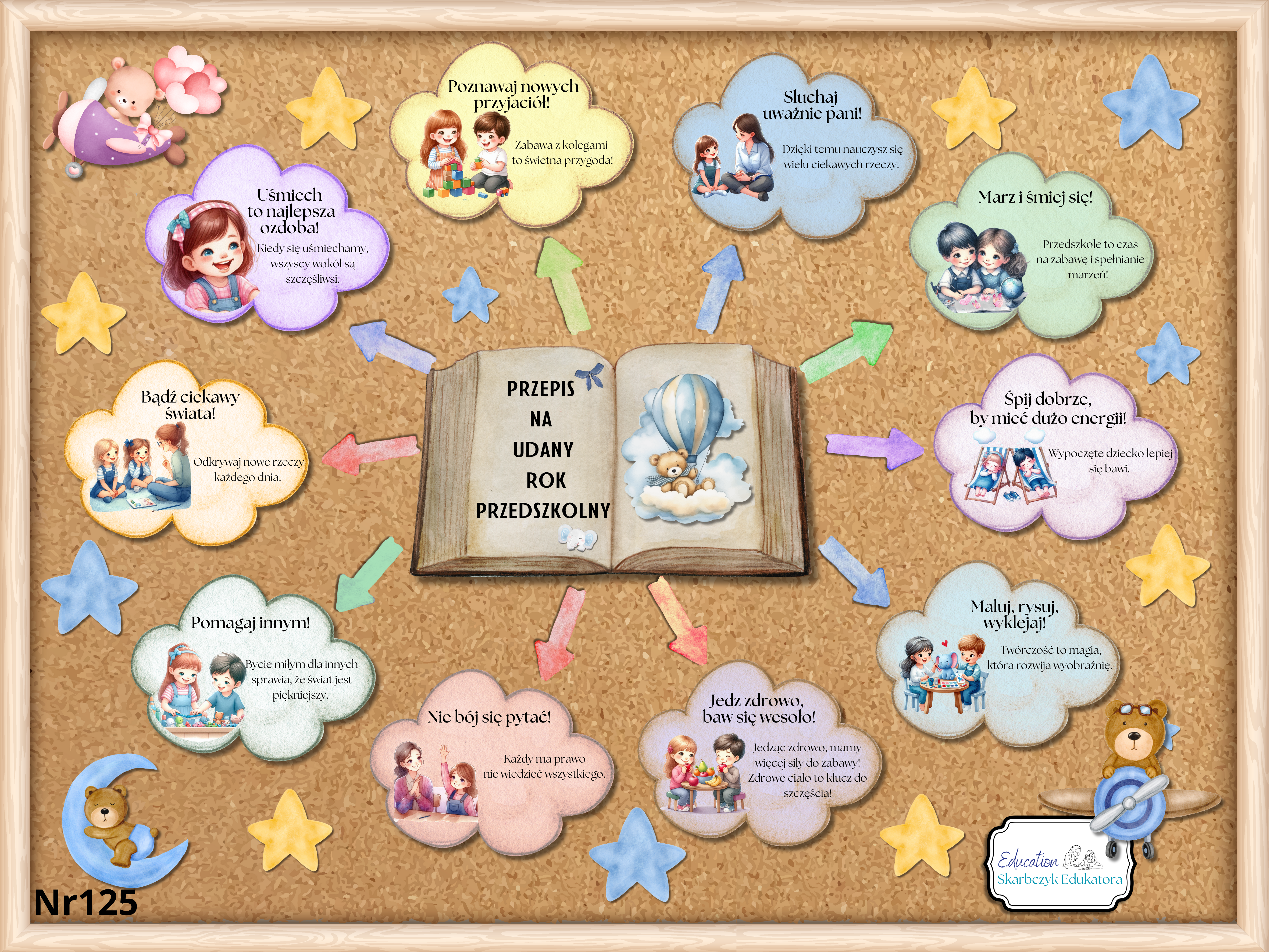 Zestaw materiałów na gazetkę przedszkolną. W skład zestawu wchodzi:
