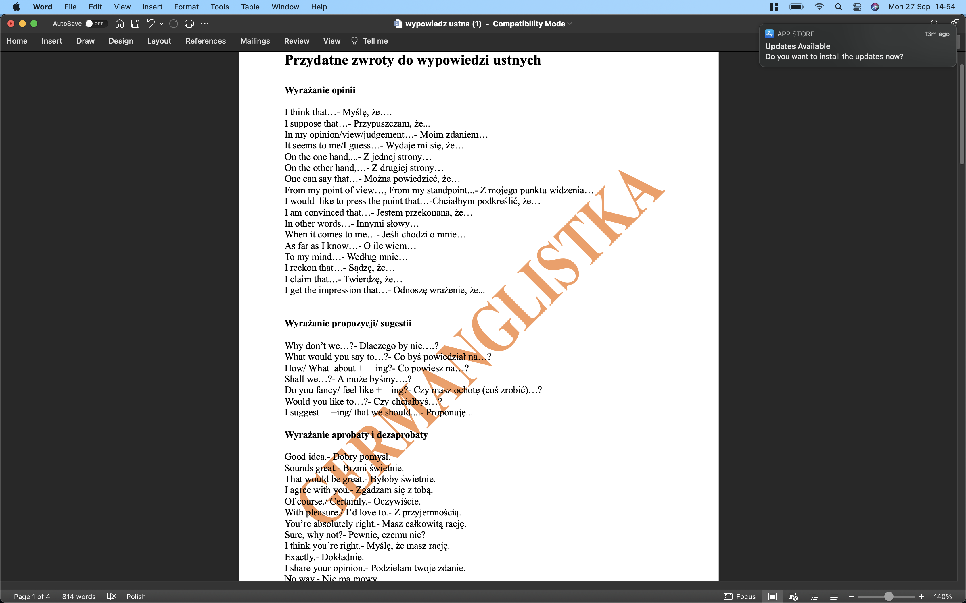 Przydatne zwroty do wypowiedzi ustnych - matura i nie tylko