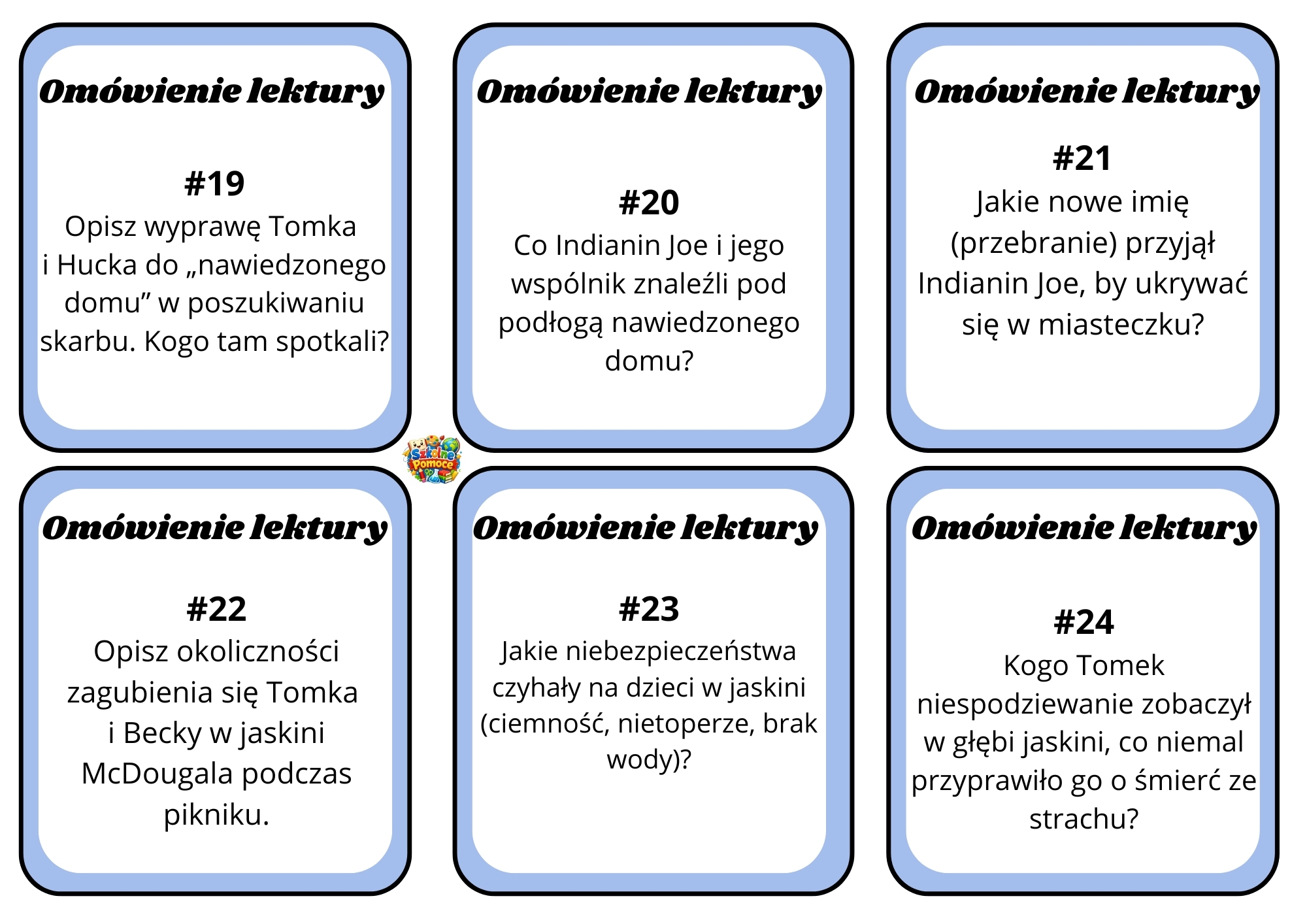 Szanowni Państwo, przygotujcie się na lekcję pełną sprytu i przygód, ale bez malowania płotu za darmo! Przedstawiam „Dziennik Przygód Tomka Sawyera” – kompletny pakiet kart z pytaniami sprawdzającymi znajomość kultowej powieści Marka Twaina.