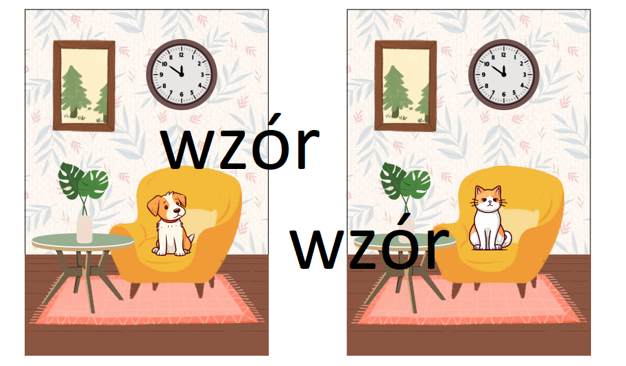 Plik zawiera ilustracje przedstawiające psa i kota. Karty służą do ćwiczenia przyimków. Można je ze sobą porównywać.