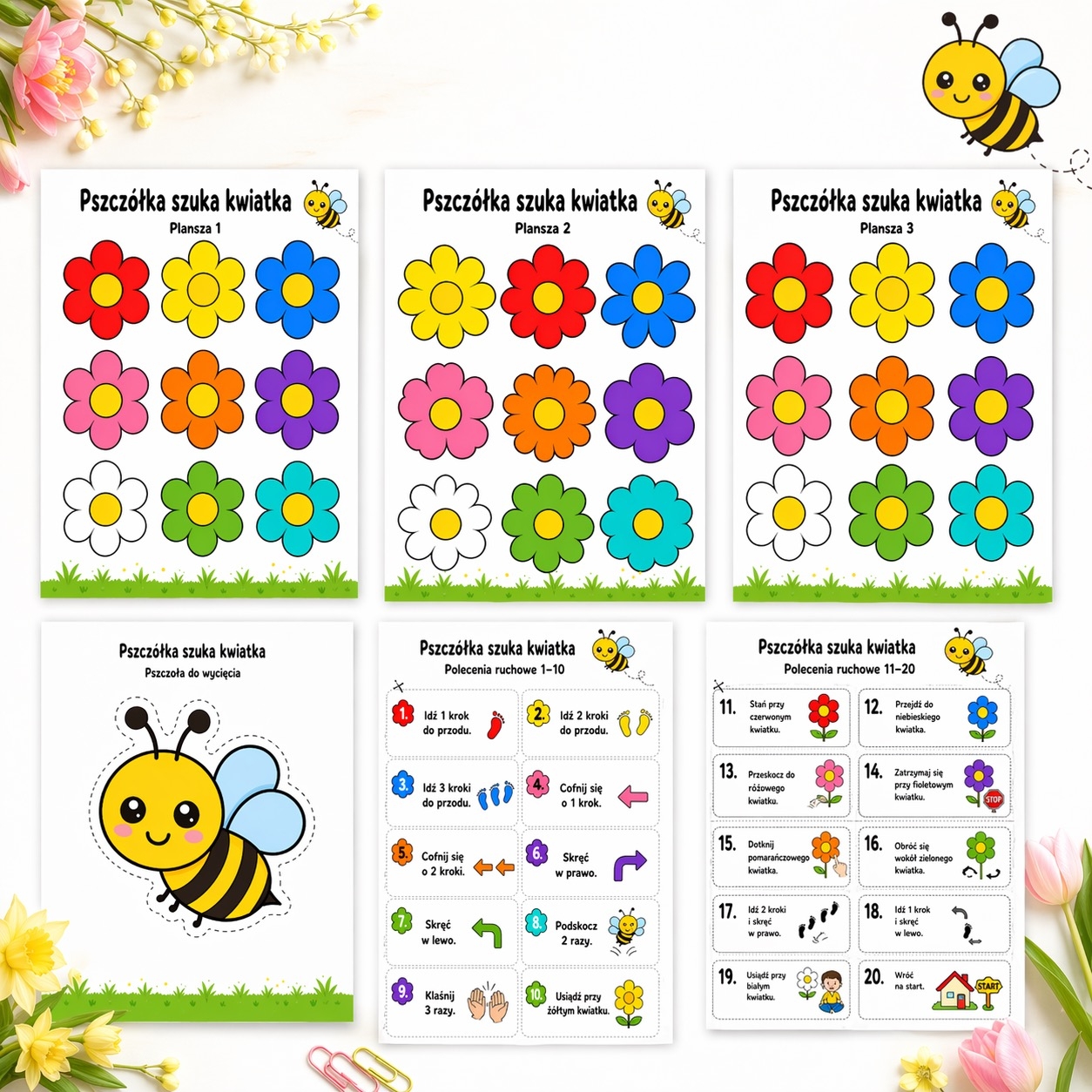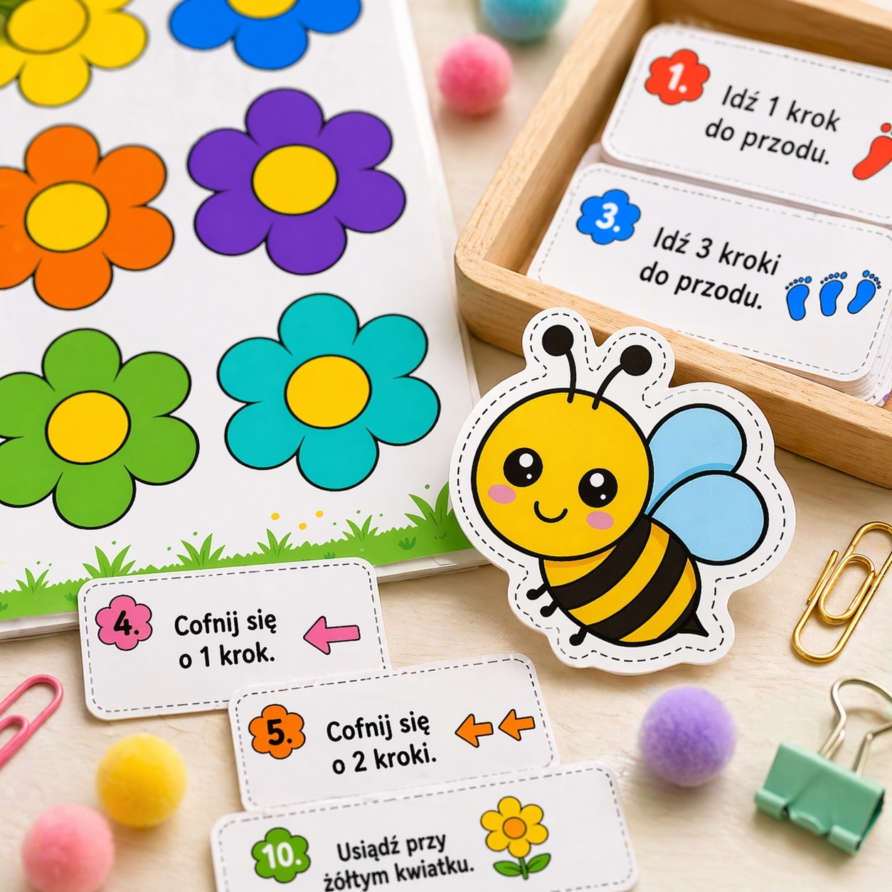 🐝 Wystarczy wydrukować, wyciąć pszczółkę i karty poleceń — i można zaczynać zabawę!