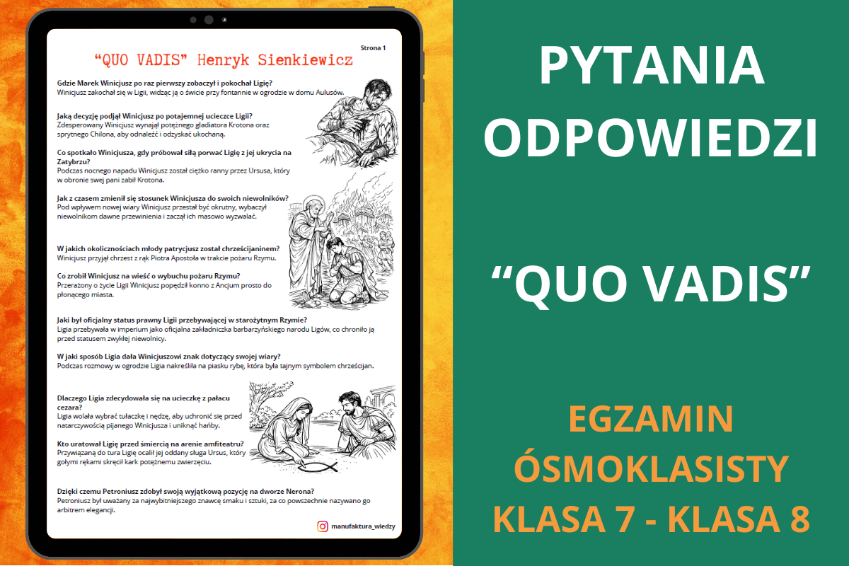 Poniżej znajdziesz zestaw pytań i odpowiedzi do lektury Quo vadis Henryka Sienkiewicza, przygotowany jako szybka i skuteczna forma powtórki z języka polskiego.