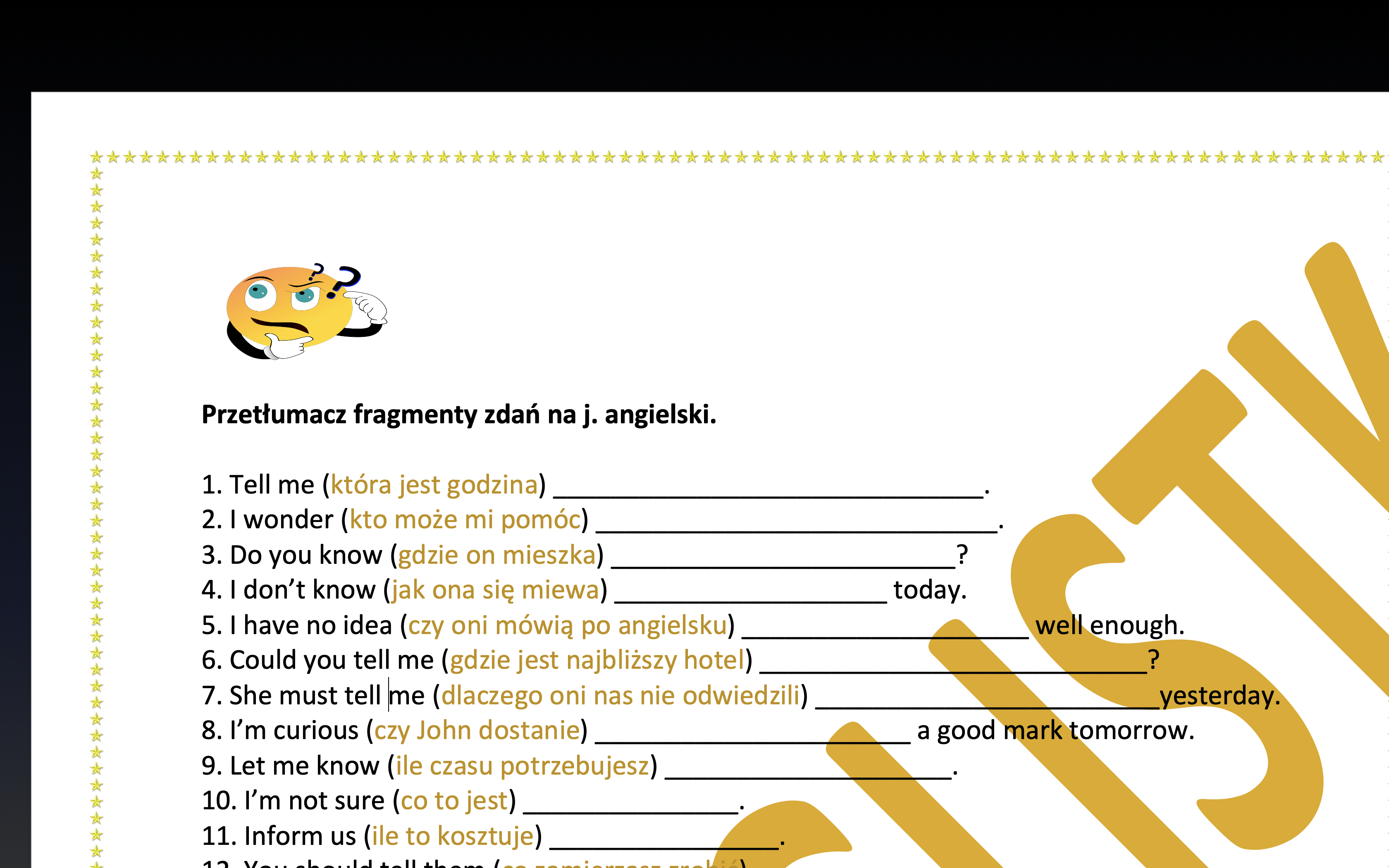 Pytania pośrednie - tłumaczenie fragmentów zdań + KLUCZ egzamin ósmoklasisty