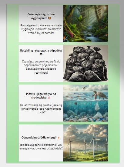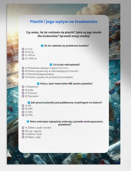 💡 Pakiet quizów edukacyjnych to doskonały wybór dla szkół, nauczycieli, rodziców i wszystkich miłośników ekologii. Dzięki niemu dzieci, młodzież oraz dorośli mogą w łatwy i angażujący sposób zdobyć wiedzę na temat kluczowych zagadnień związanych z ochroną naszej planety.