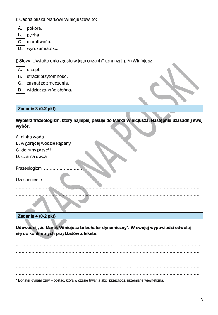 3. Odpowiedzi wraz z proponowaną punktacją. (2 strony)