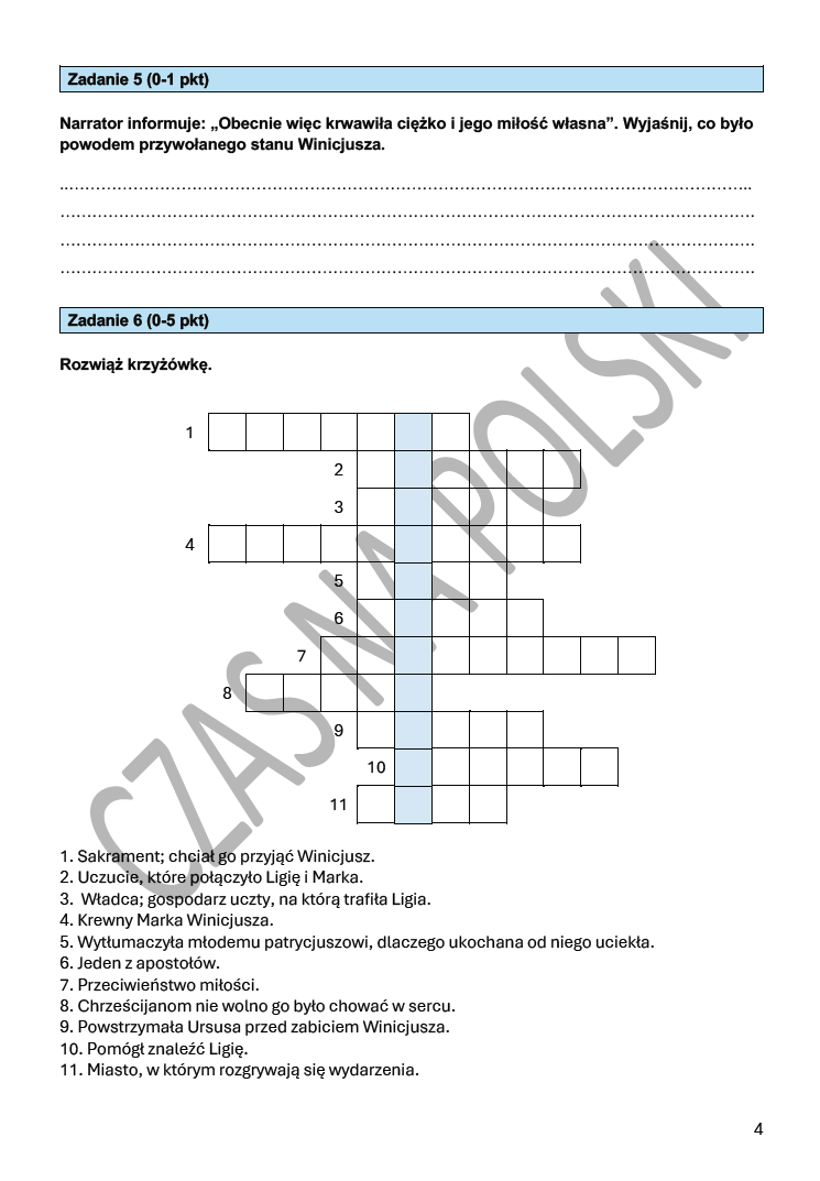 2. Arkusz z zadaniami typu: prawda-łasz, jednokrotnego wyboru, krótkiej odpowiedzi, krzyżówka. (4 strony)