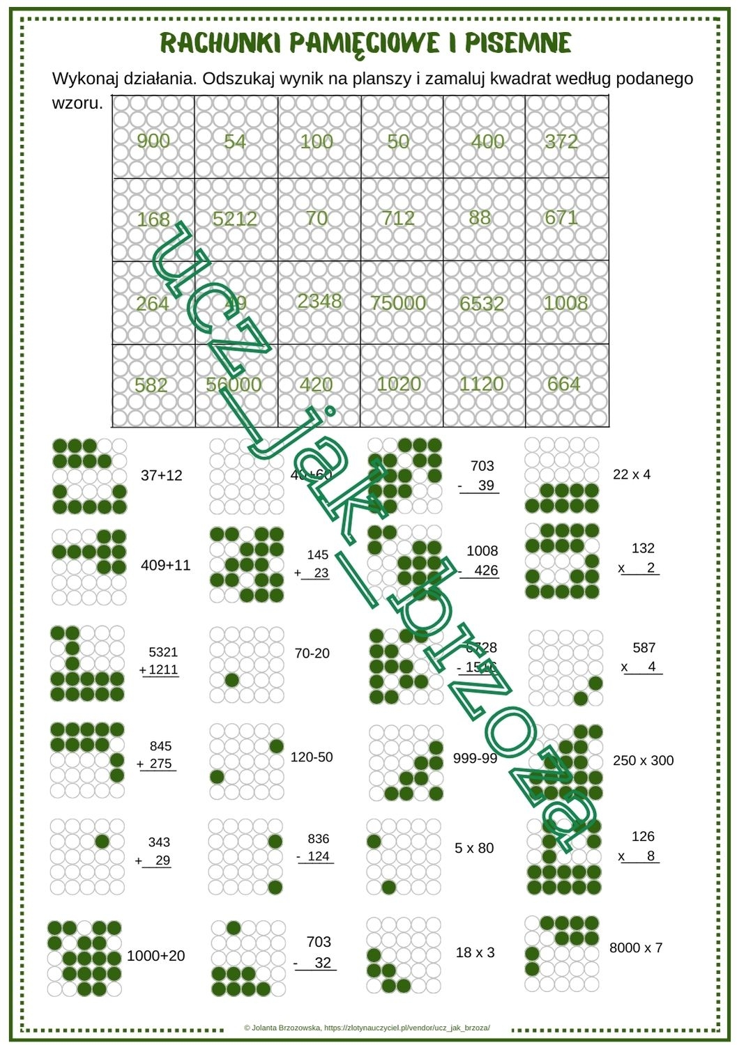 Kodowana karta pracy „Rachunki pamięciowe i pisemne” z motywem bożonarodzeniowym przeznaczona dla uczniów klasy 4. Sprawdzi się na luźniejsze lekcje tuż przed przerwą świąteczną lub do powtórki trzech działań w edukacji domowej. Materiał obejmuje