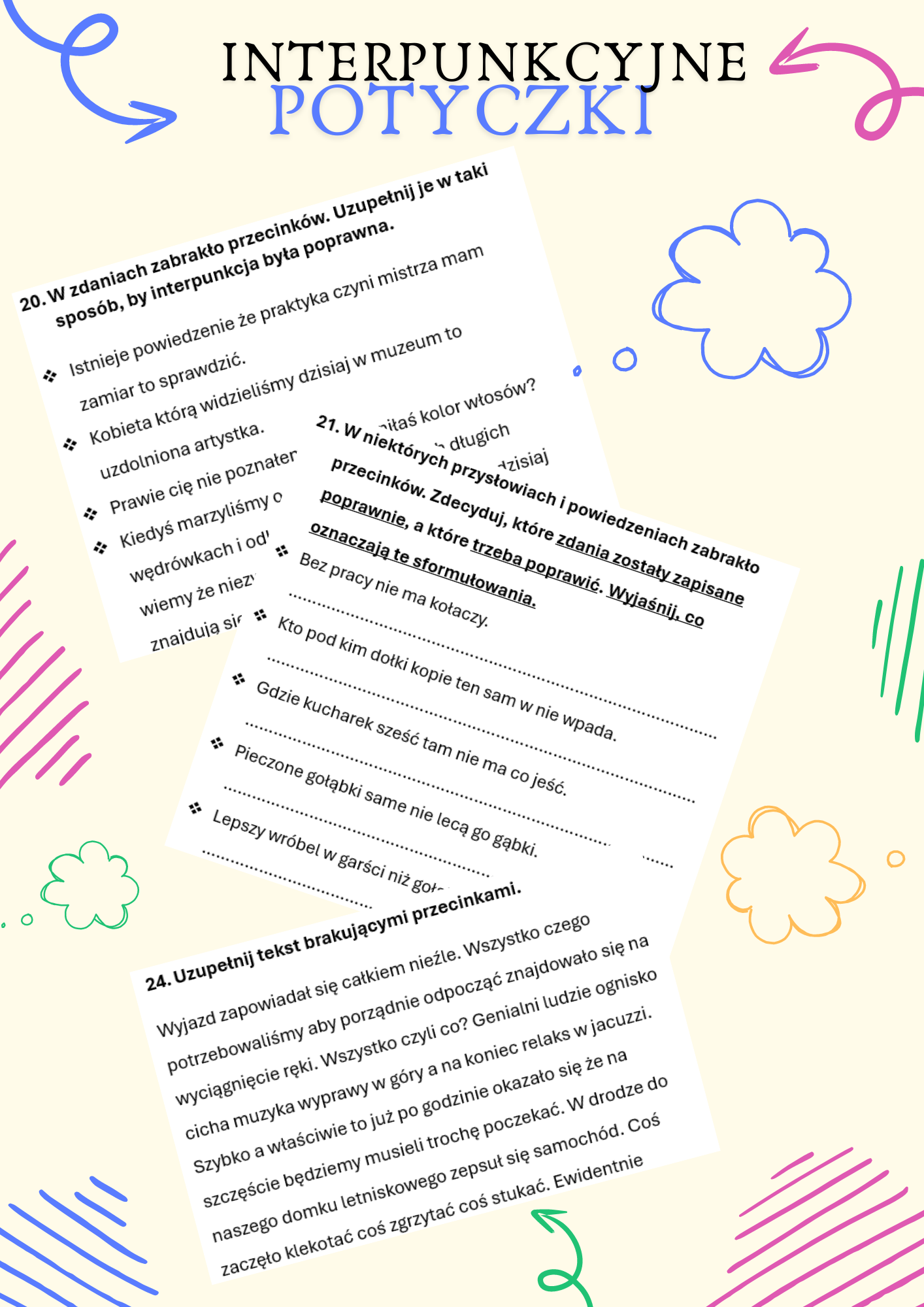 Wielka paczka egzaminacyjna E8 z języka polskiego. Sprawdzi się na ostatniej prostej, powtórek, utrwalenia wiadomości lub podczas wprowadzenia nowego materiału. Pliki zostały zapisane w formacie pdf, są gotowe do druku.