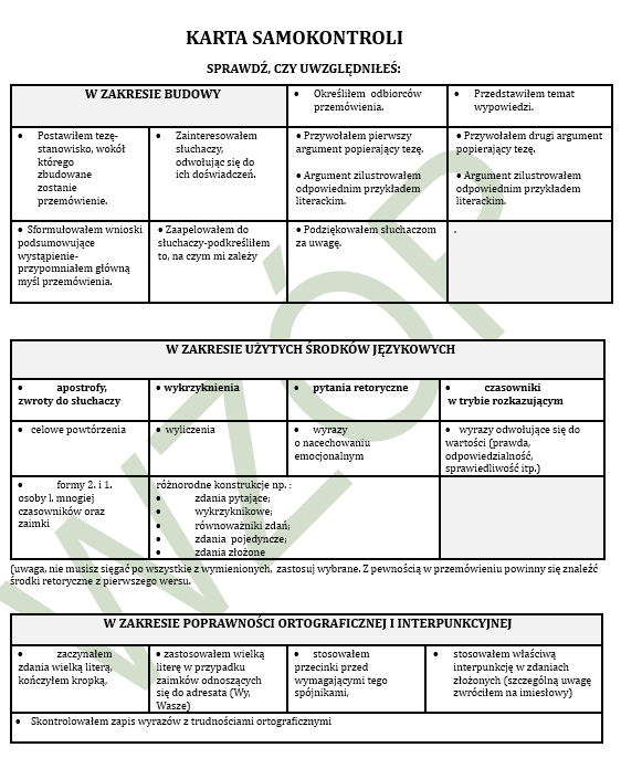 Ponadto w materiale znajduje się KARTA SAMOKONTROLI dla ucznia oraz ŚCIĄGA DLA PRZYSZŁEGO RETORA.