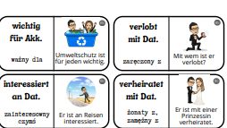 27 przykładów przymiotników łączących się z przyimkami w odpowiednim przypadku wraz z przykładem tak, aby uczniowie mogli uczyć się w kontekście. Dodatkowo wykorzystano naklejki Bitmoji - dla lepszego kojarzenia danego zagadnienia.