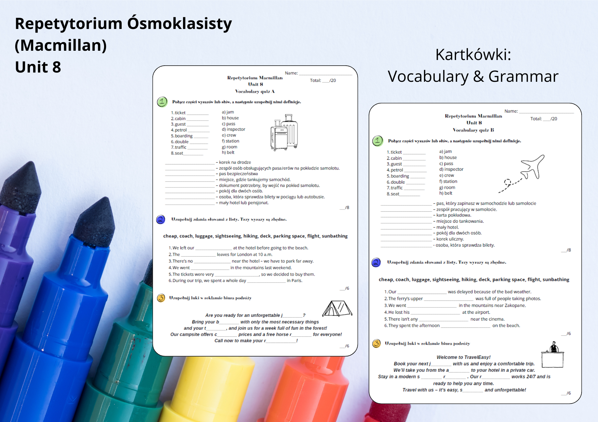 Materiał sprawdza zarówno gramatyki z działu 8, w tym: