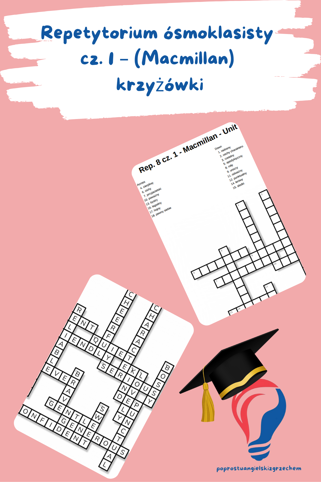 Zestaw zawiera 9 krzyżówek obejmujących słówka z działu trzeciego do podręcznika Repetytorium ósmoklasisty cz. 1 (Macmillan). Zestaw zadań ze słownictwa z tego działu znajdziesz tutaj, testy tutaj, a kartę pracy tutaj. :