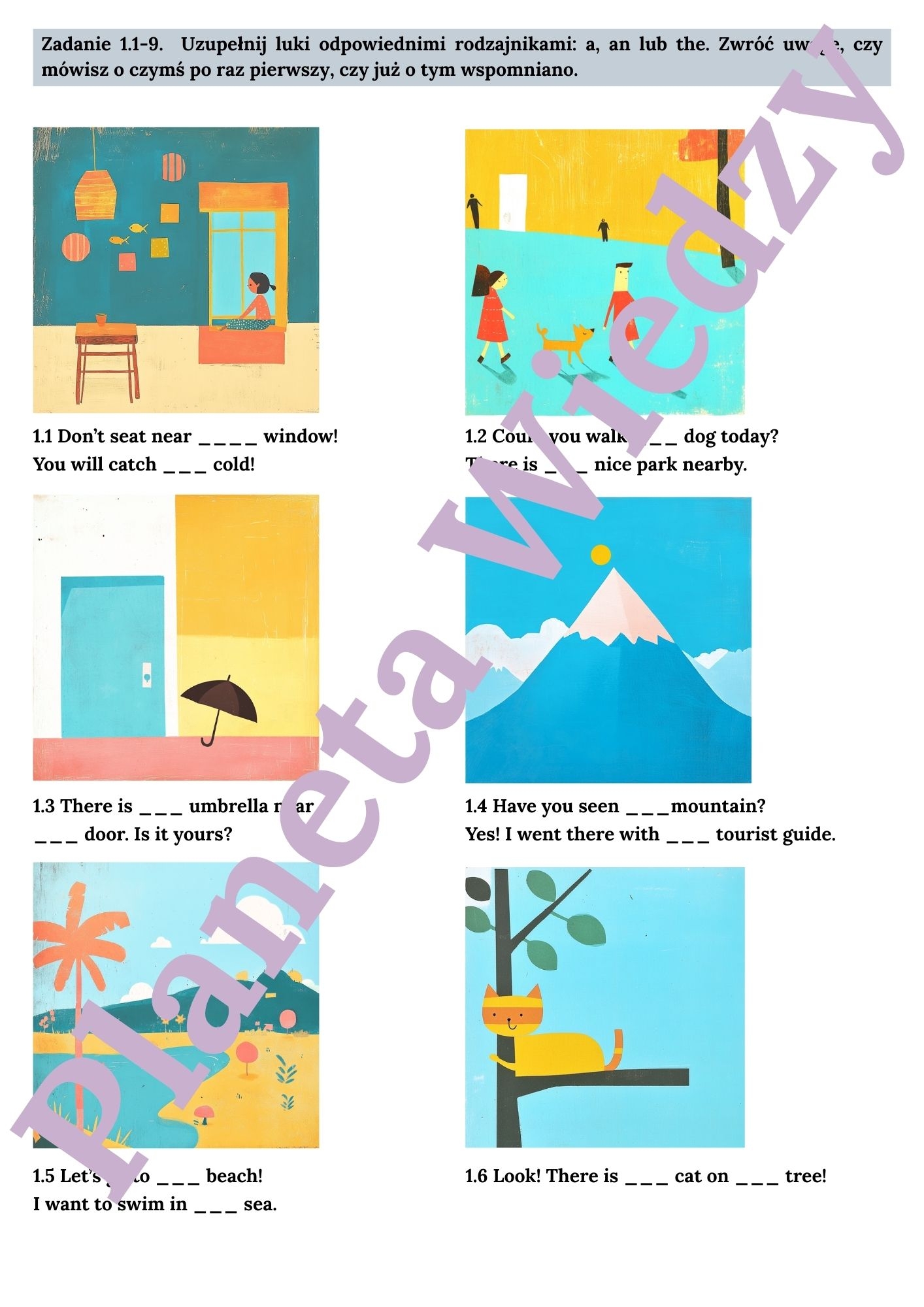🏙️ Użycie a/an/the w codziennych sytuacjach: Ćwiczenia oparte na sytuacjach z życia codziennego, pomagające uczniom lepiej zrozumieć praktyczne zastosowanie rodzimych artykułów.