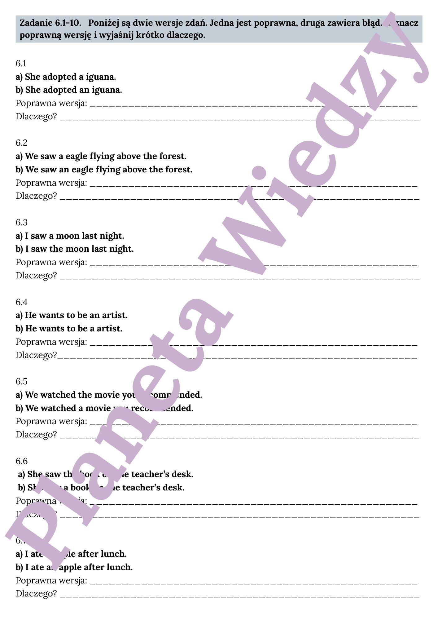📚 Tworzenie własnych zdań: Ćwiczenia rozwijające kreatywność uczniów poprzez tworzenie zdań z użyciem a, an i the.