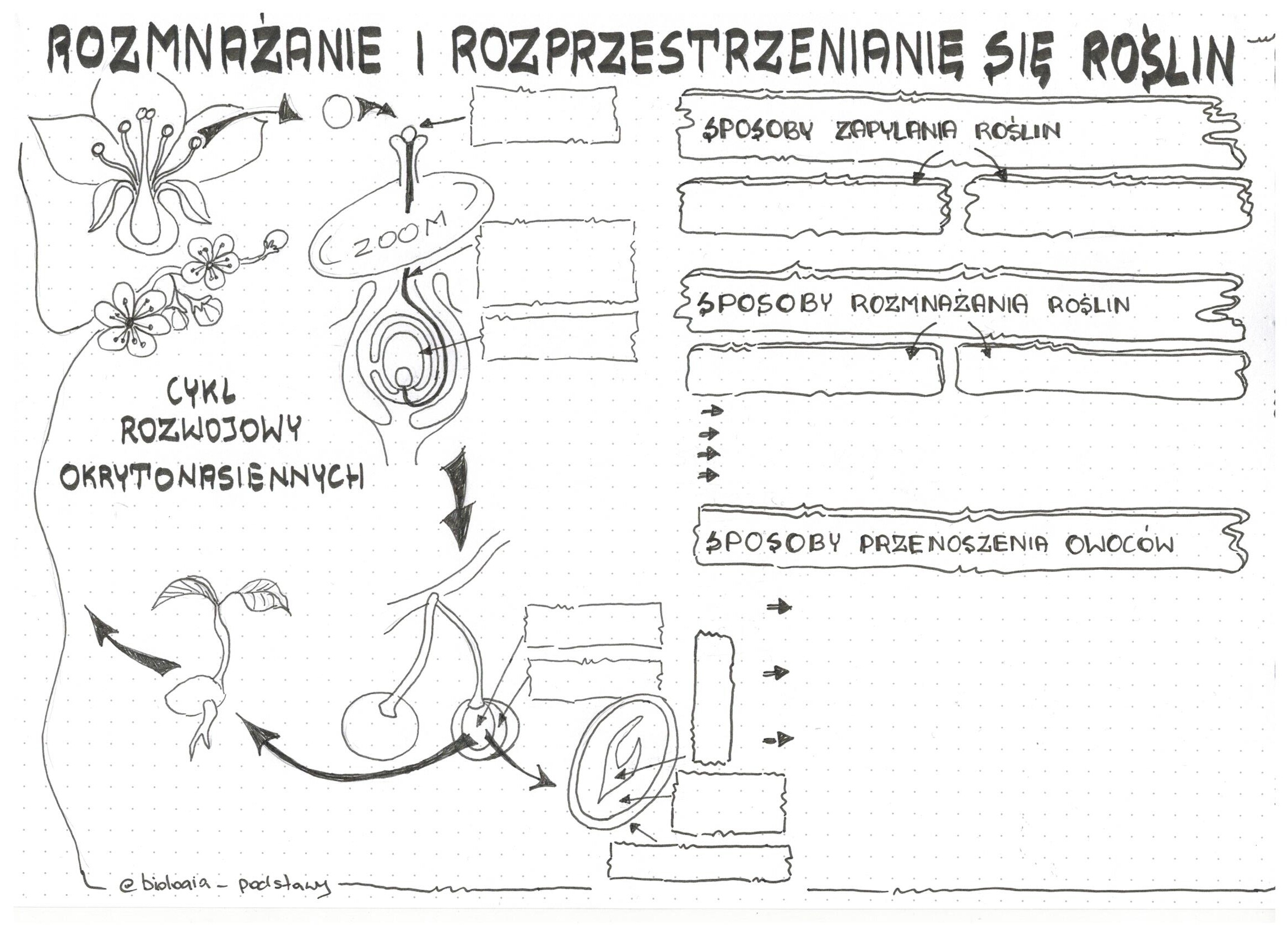 Okrytonasienne cz.2 rozmnażanie i rozprzestrzenianie się okrytonasiennych- klasa 5 – sketchnotka jako gotowa notatka z lekcji w formie KP do uzupełnienia.