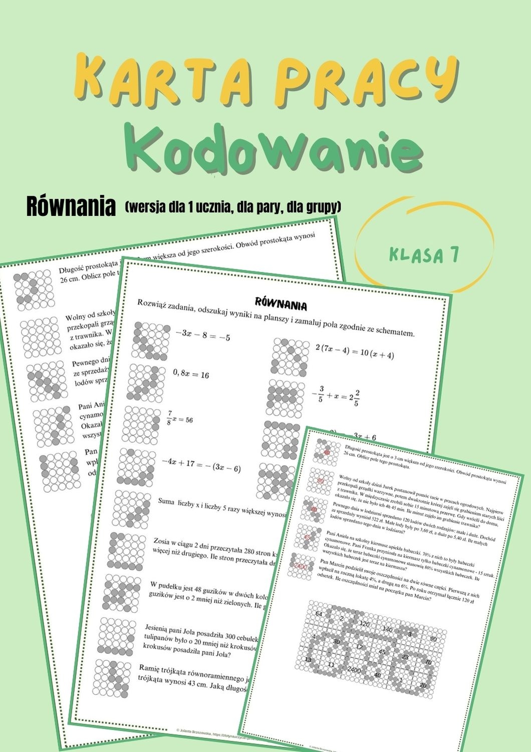 Karta pracy z kodowaniem przeznaczona dla uczniów klasy 7 i 8.