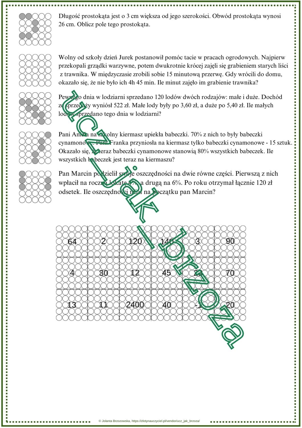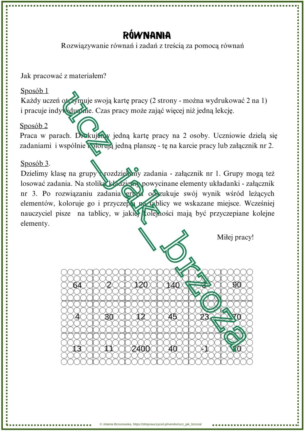 Znajdują się w niej równania do rozwiązania oraz zadania z treścią do rozwiązania za pomocą równań.