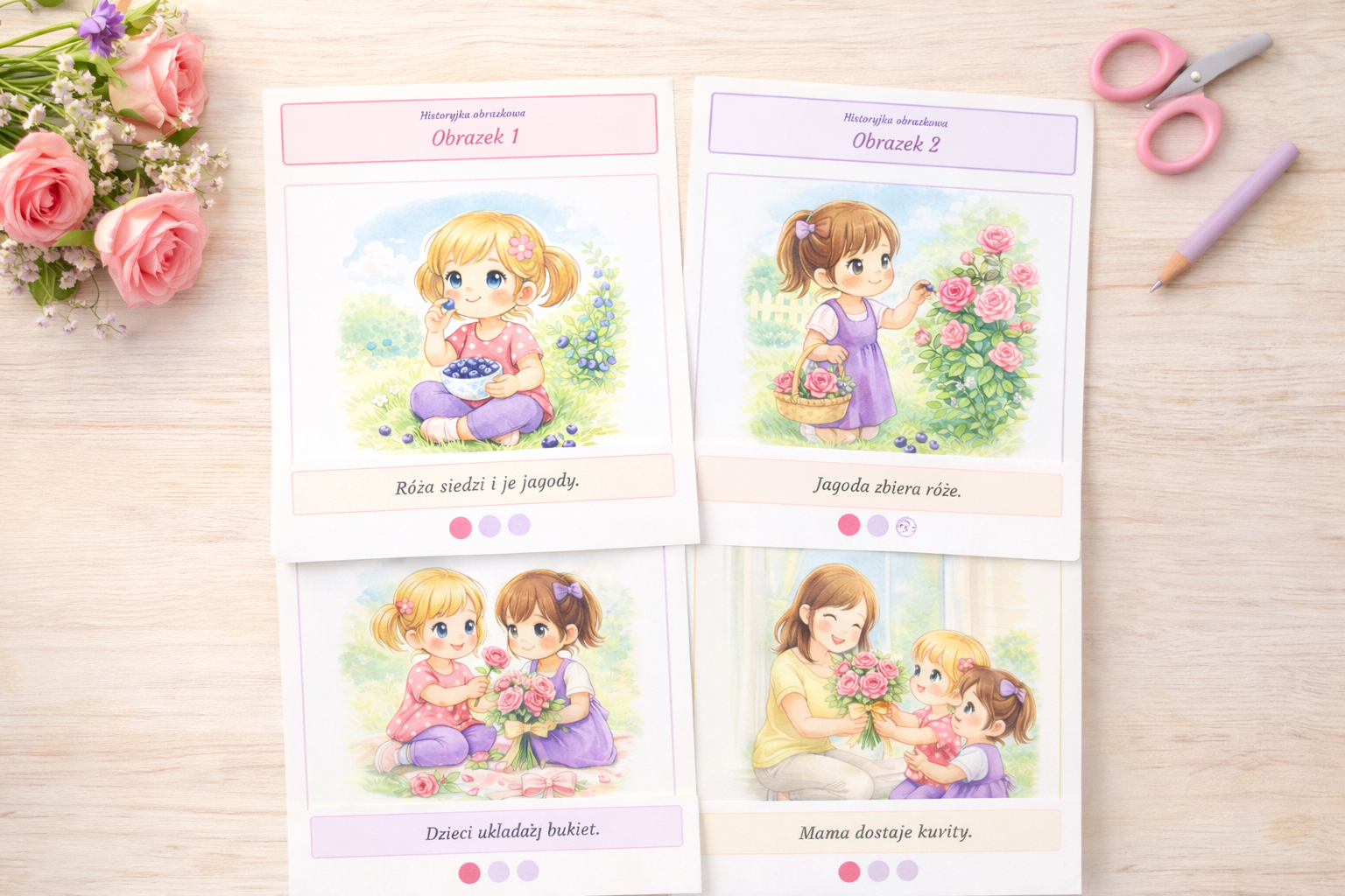 🌸 Róża i Jagoda – historyjka obrazkowa 4 elementy | PDF do druku 🌸