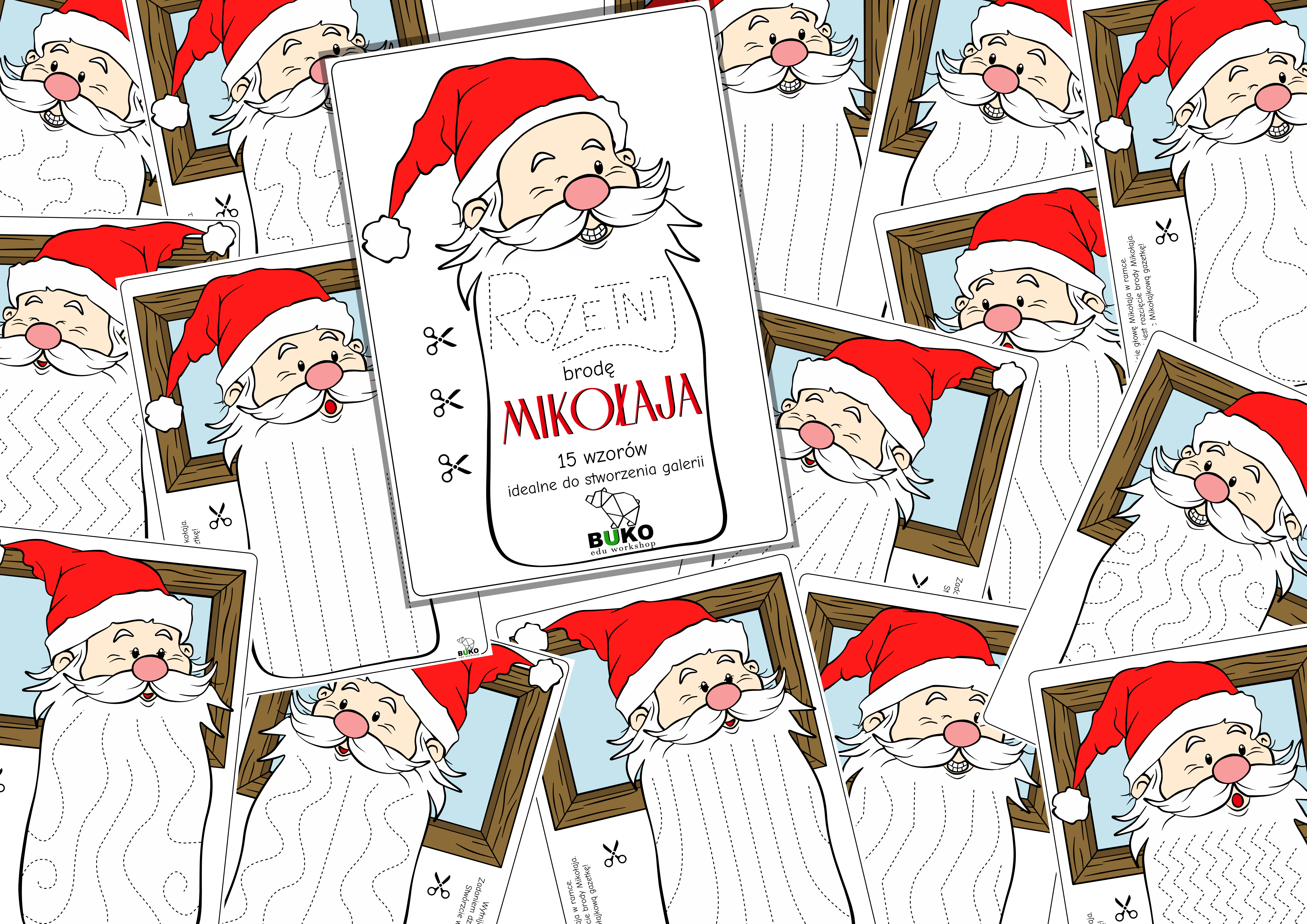 - Stworzenie świątecznej dekoracji: Po wycięciu, głowy Mikołajów mogą posłużyć do stworzenia pięknej galerii ściennej w sali terapeutycznej, klasie lub w domu!