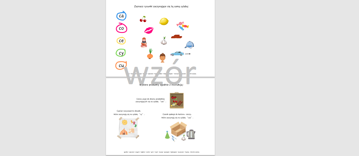 Plik zawiera 9 ćwiczeń różnicowania słuchowego oraz w wymowie głosek c:cz.