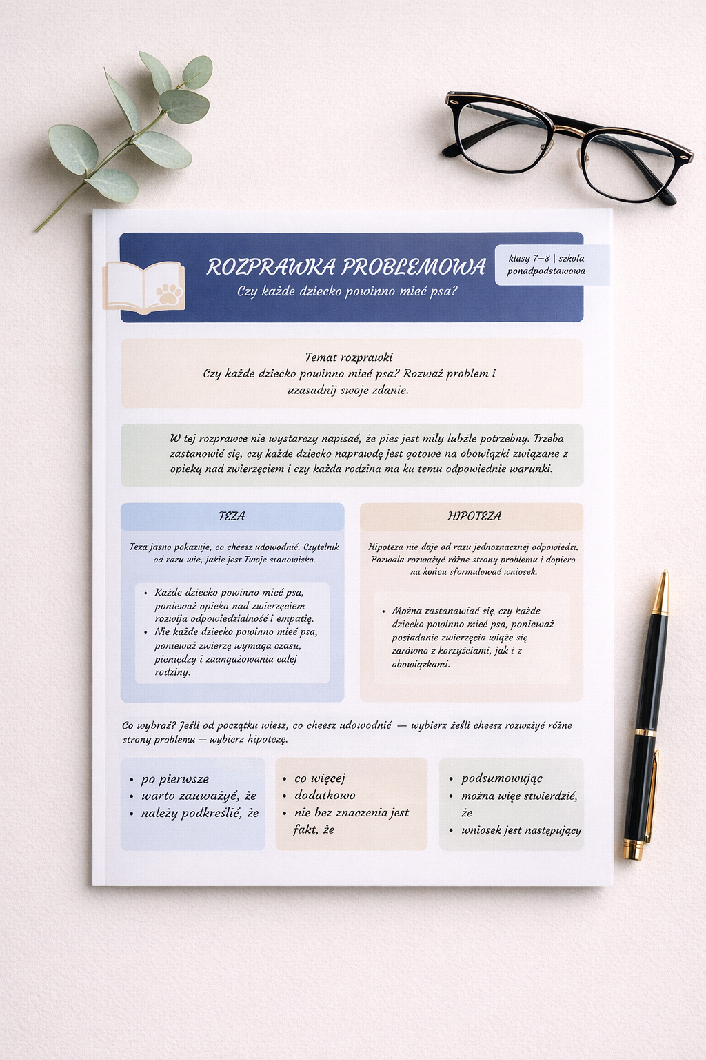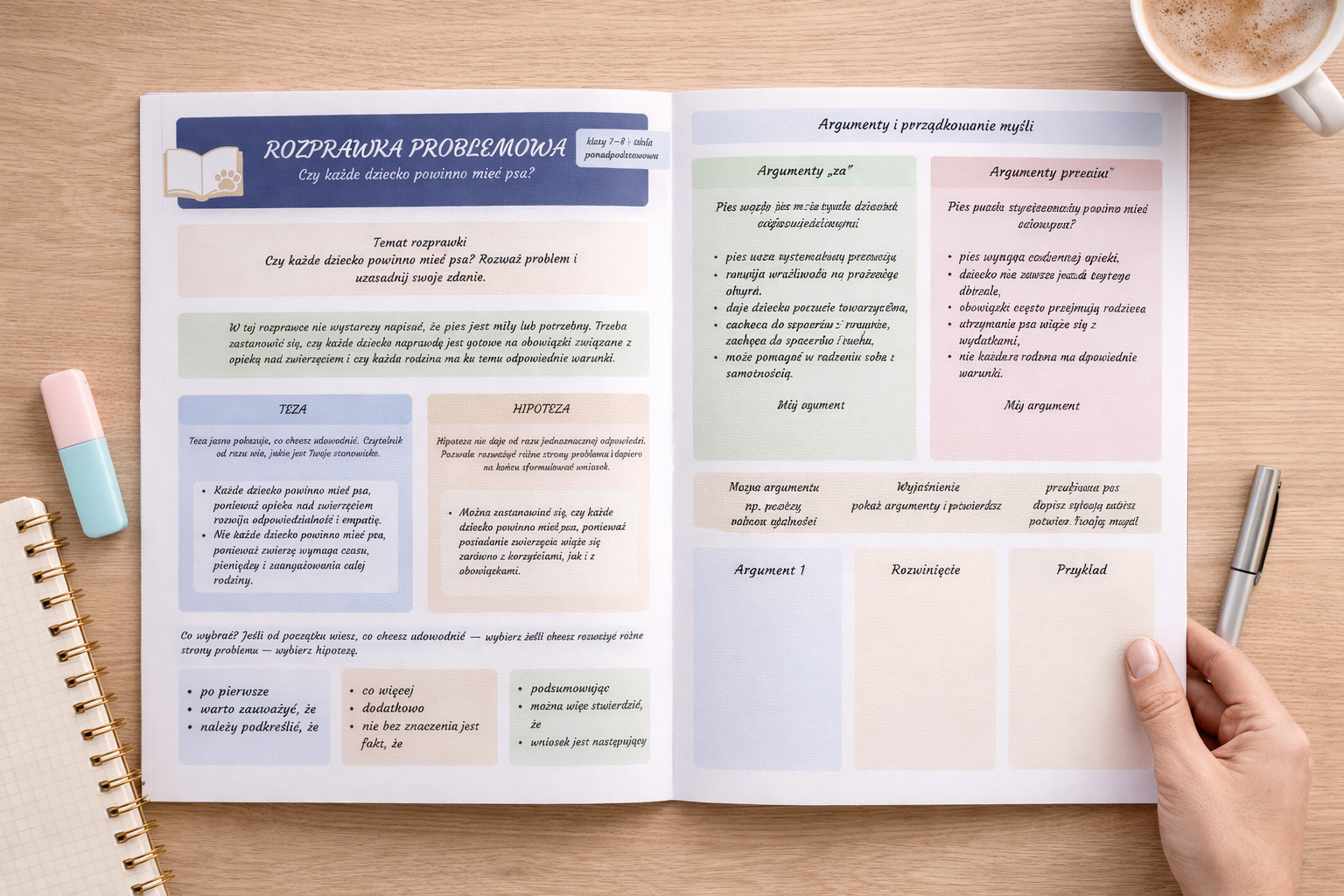 ✨ Szukasz materiału, który naprawdę nauczy ucznia pisać rozprawkę, a nie tylko „odhaczyć temat”?