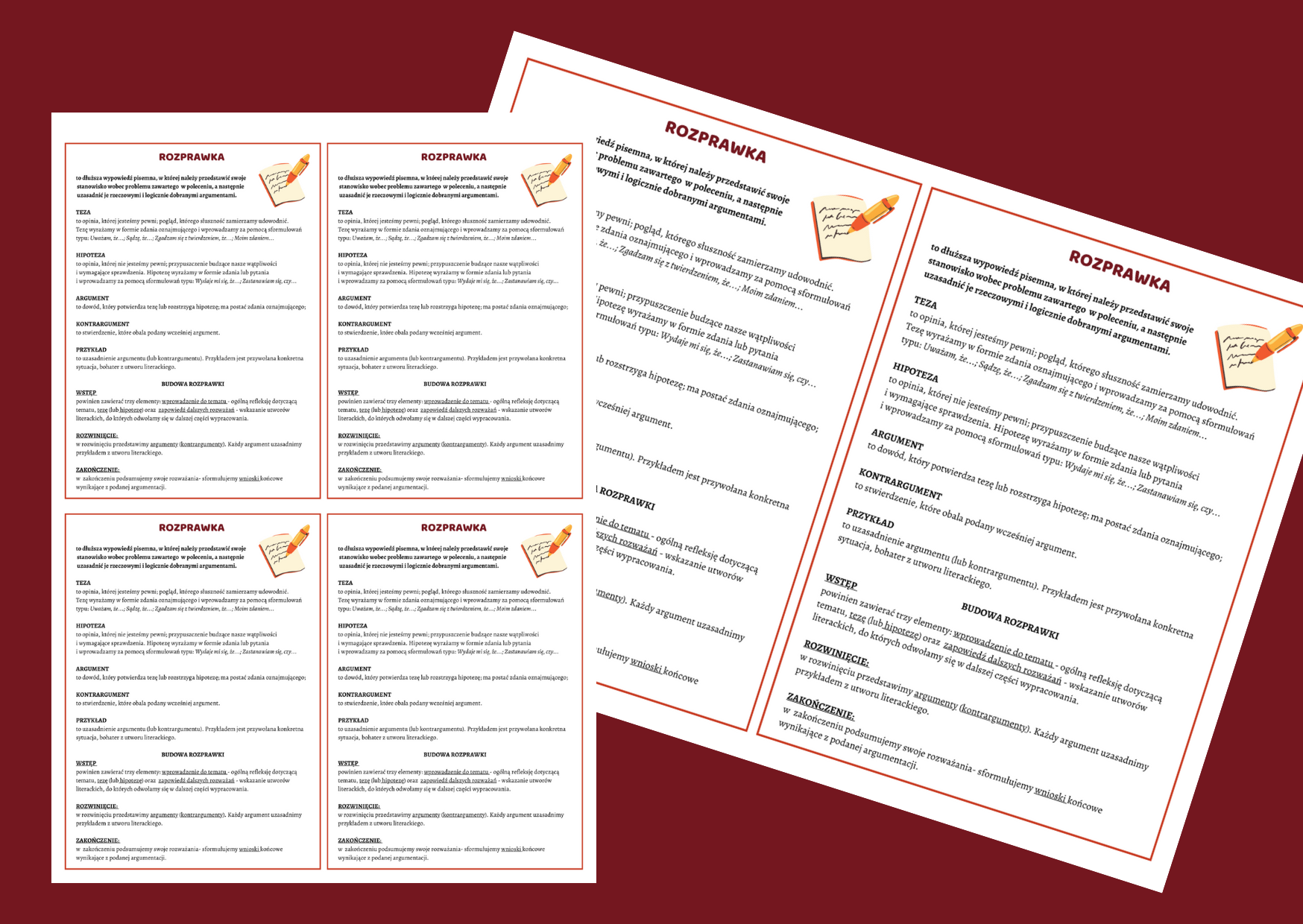 Wklejka dotycząca rozprawki w dwóch wielkościach.