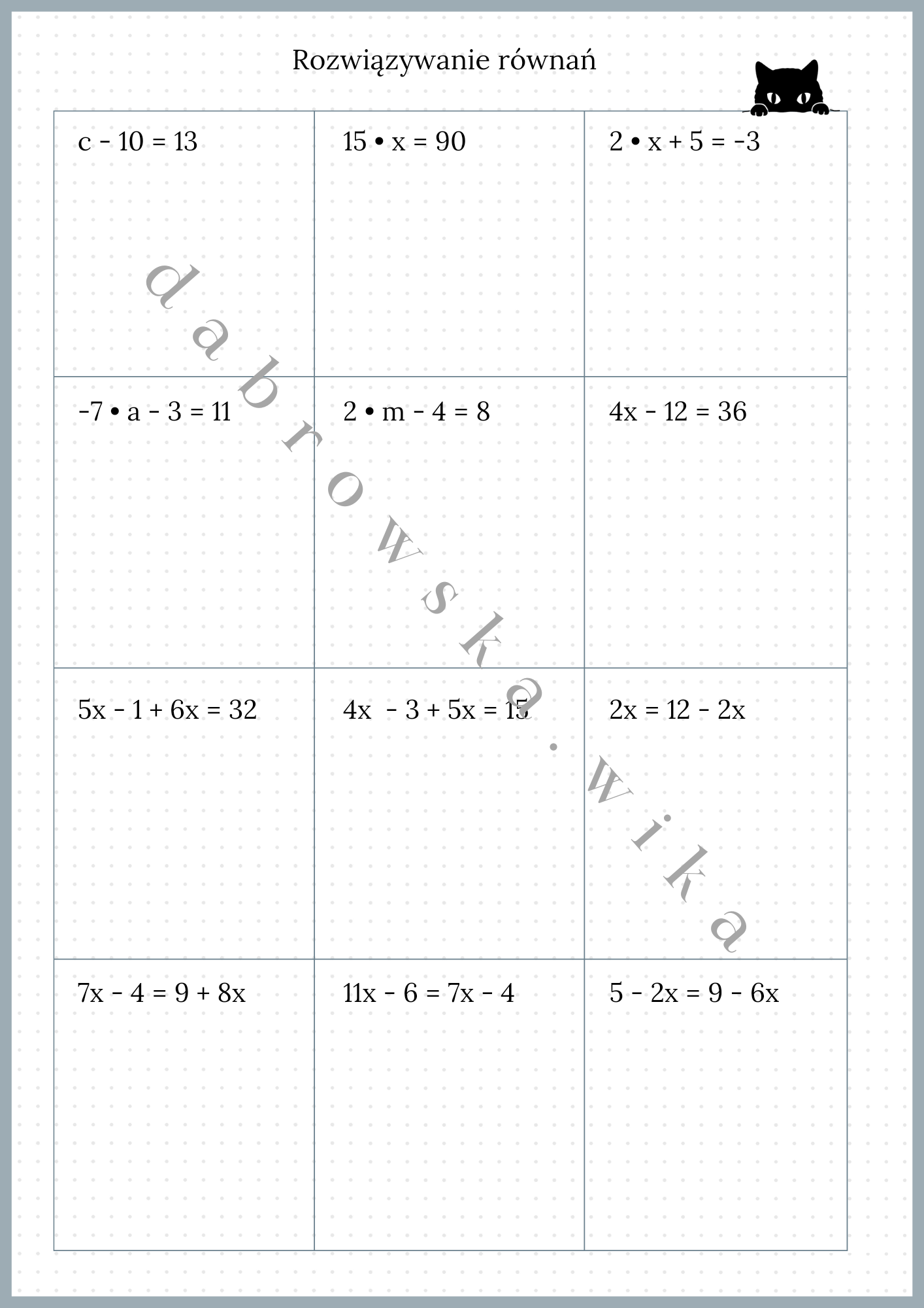 Materiał zawiera kartę pracy z rozwiązywania podstawowych równań.