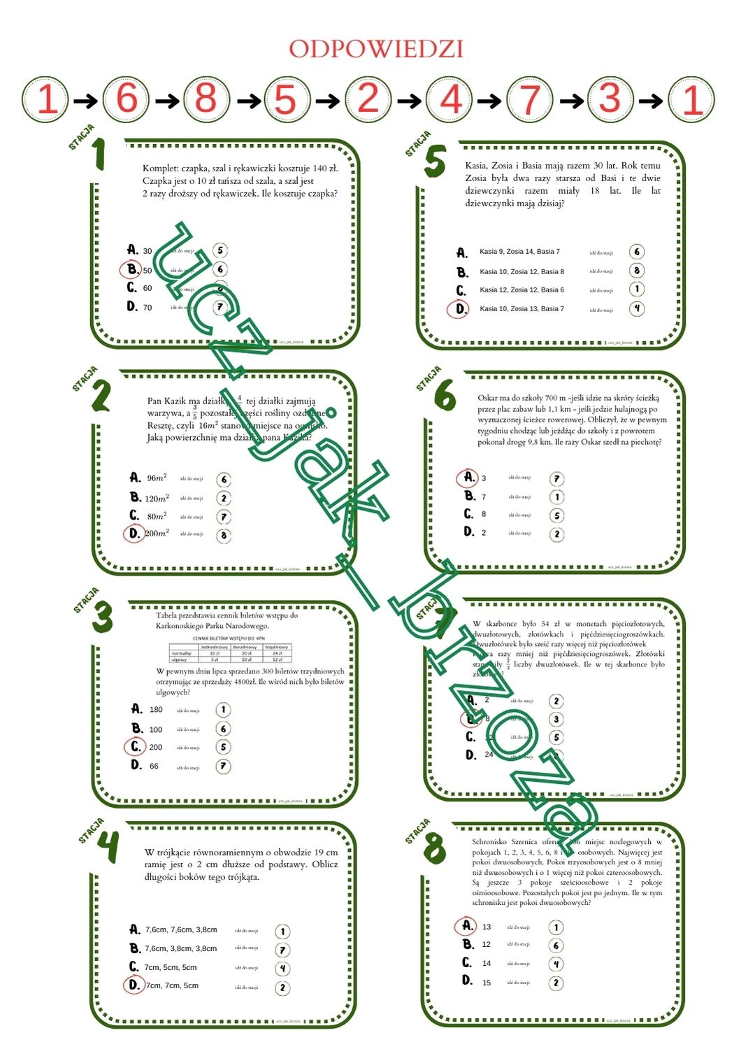 Materiał zawiera 8 zadań tekstowych w formie stacji zadaniowych.