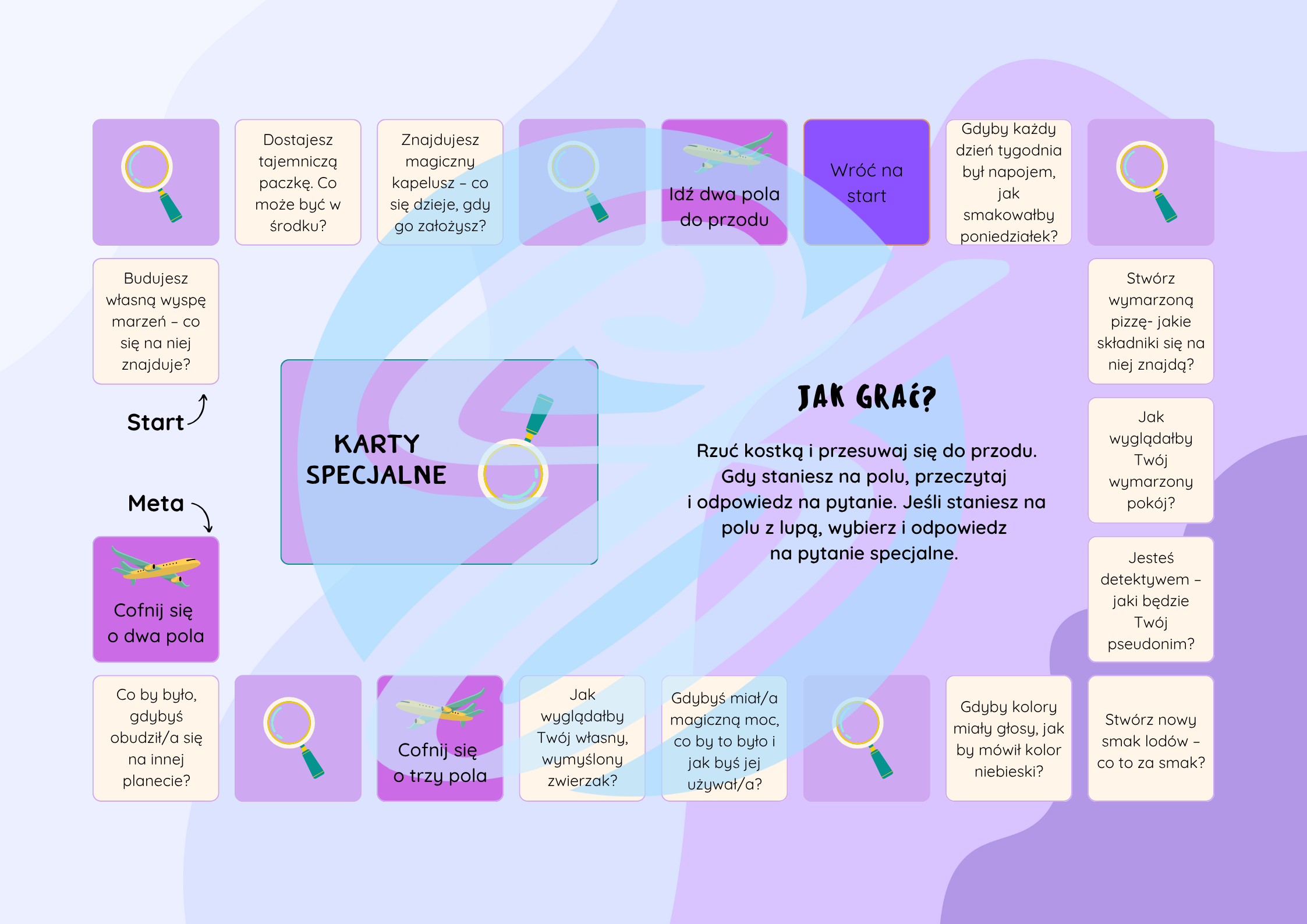 ✔️ Pytania i karty specjalne, które inspirują do kreatywnych wypowiedzi, m.in.: