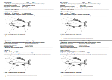 Kartkówka z tematu ryby. 4 rzędy, 5 pytań (otwarte i zamknięte) w tym przystosowania ryby do życia w wodzie, budowa ryby, znaczenie i rozmnażanie. Zapraszam.