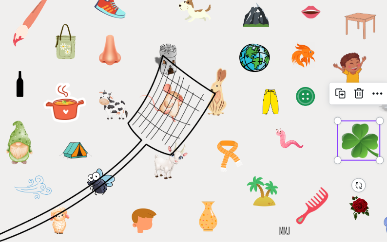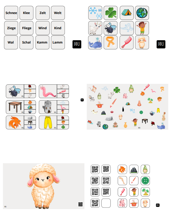 Zestaw zawiera materiał do rozwijania zasobu słownictwa. Celem zadań jest utrwalenie poznanych słów w trakcie zabawy. Polecam wykorzystać zestaw do gier typu: memo, fiszki, Bystre oczko, Spinacze. Materiał można wykorzystać również na tablicę interaktywną w formacie pdf lub prezentacji (każda karta obrazkowa zawiera QR-kod z danym słowem).  Znajdą tu Państwo: karty obrazkowe oraz nazwy (także zakodowane w QR-kodach), grę - Spinacze - wybierz z trzech obrazków słowo rym. Polecam wykonanie na tablicy Jamboard gry Bystre oczko - klasa/uczeń zaznacza laserem albo kształtem wyraz, o który go pytamy oraz odnajduje rym - otwieramy na dysku Google tablicę Jamboard, na górnym panelu odnajdujemy - Ustaw tło, przesyłamy pobrane na komputer zdjęcie z zestawu do gry Bystre oczko (są trzy takie plansze), wyświetlamy na tablicy interaktywnej i uczniowie wykorzystując laser wskazują wyrazy - alternatywa do gry w packi (karty obrazkowe wydrukowane i zalaminowane, przyklejone magnesami do tablicy lub rozłożone na podłodze, uderzane packą na muchy przez uczniów po usłyszeniu słowa - zaznaczają dane słowo lub szukają rymu. Odpowiednie także do Stacji zadaniowych Miłej zabawy